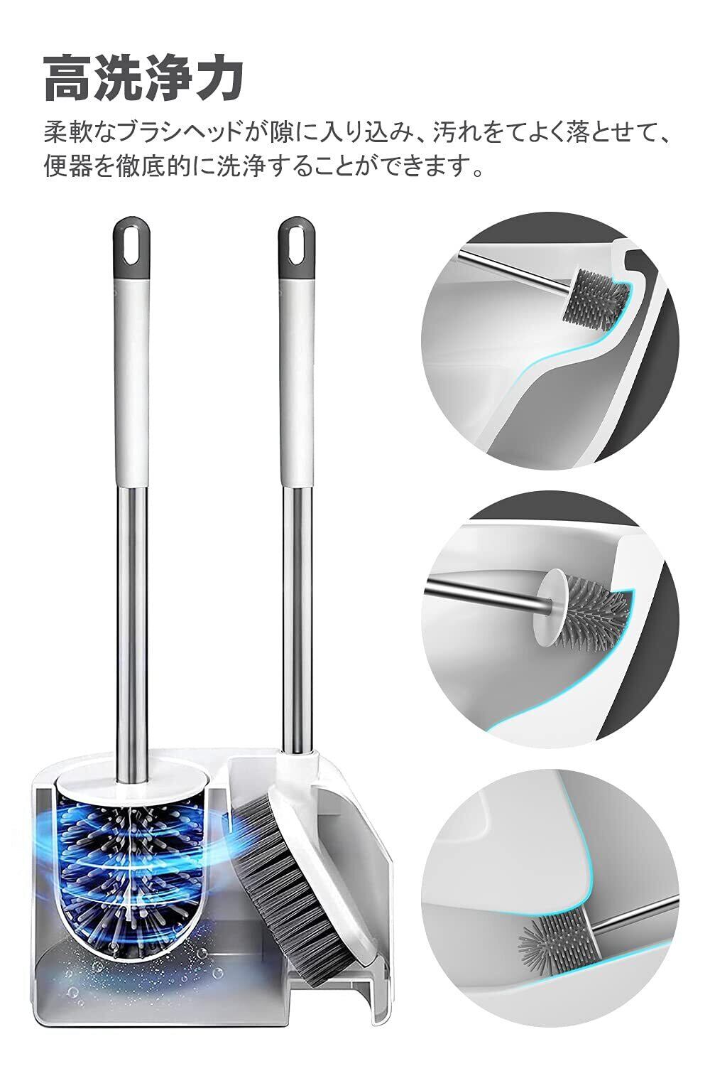 トイレブラシ 2個セット トイレ掃除 防滴掃除ブラシ ホルダー付き 360°タイプ 抗菌TPRブラシヘッド 水はね防止 傷つけない トイレ掃除用品 便器掃除 速乾通気 省スペース 床置き