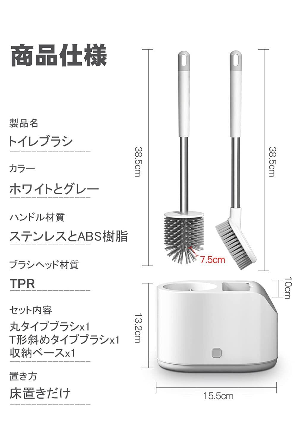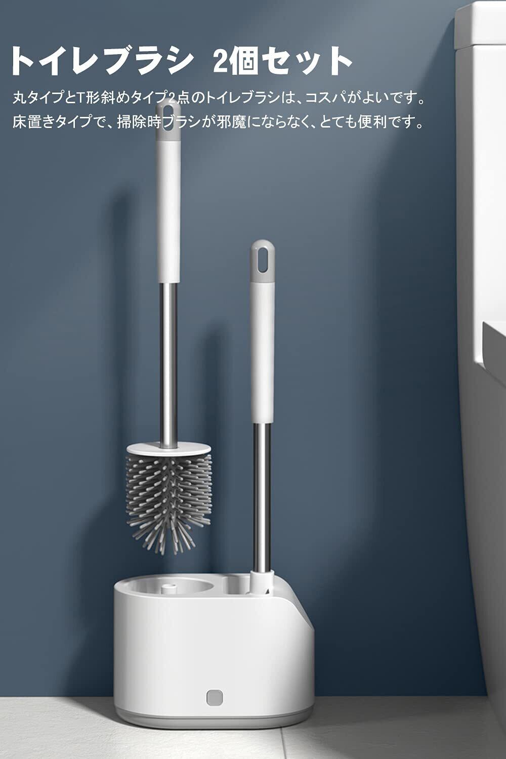【2個セット】:丸タイプブラシとT形斜めタイプブラシの2点がありますので、掃除の場所によってご使用ください。ハンドル材質:ステンレスとABS樹脂。ブラシヘッド材質:TPR。セット重量:570g。カラー:ホワイトとグレー。置き方:床置きだけ。