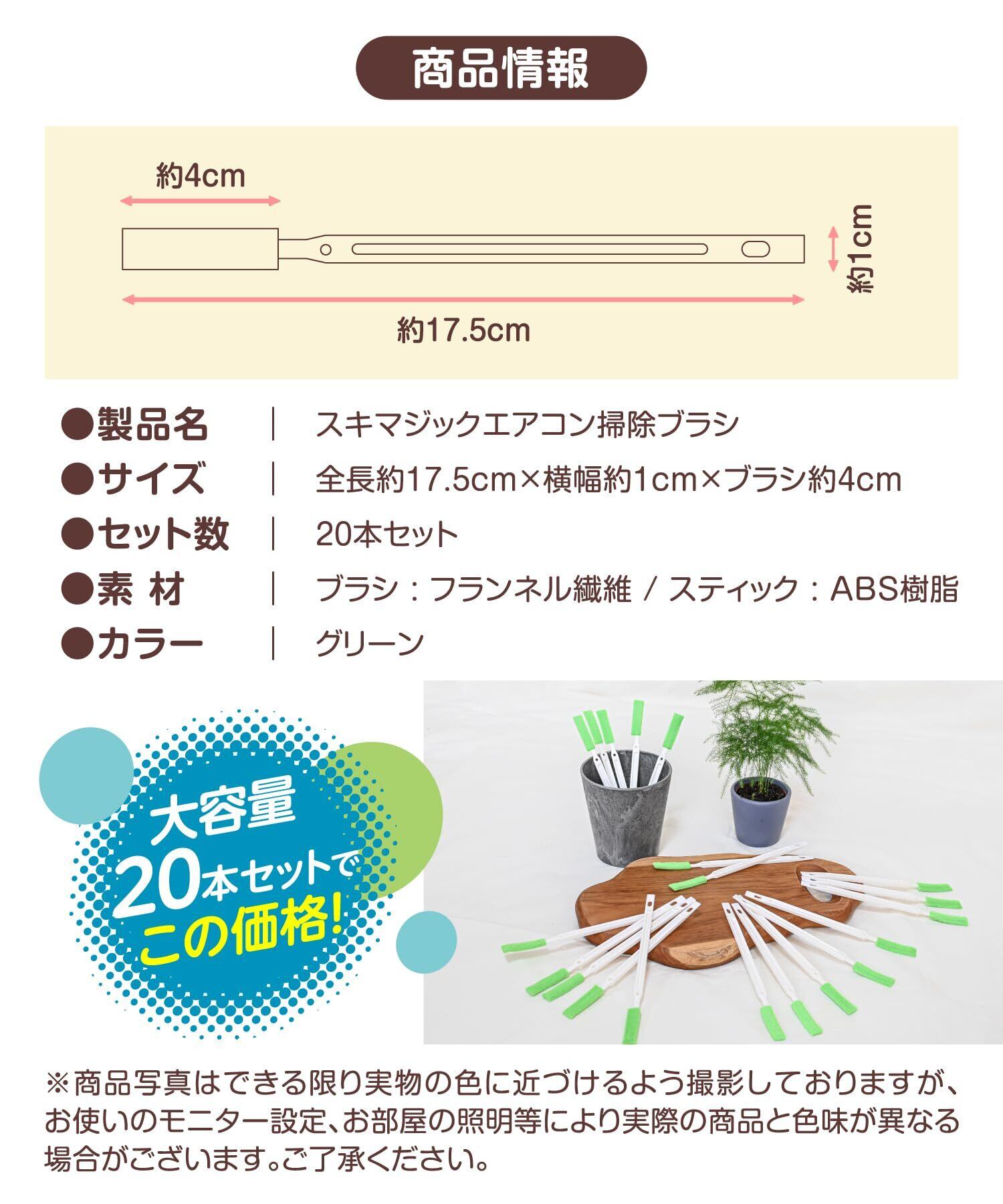 エアコン掃除ブラシ 隙間ブラシ 隙間掃除 ヘラ付 エアコンブラシ 掃除道具 隙間掃除グッズ (長さ17.5cm×20本)
