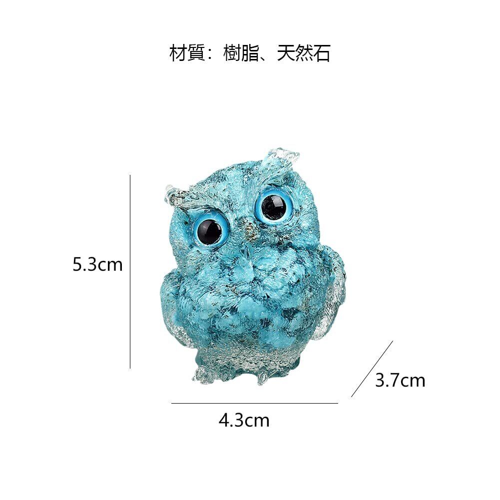 ●仕様:ふくろう型の置物。●材質:樹脂、天然石。樹脂はエコの素材、耐久性があり、灰がつかにくい表面は洗い流しやすい、色が褪せない。●工芸:シリコンモールドで作られた置物、中に天然石が入っています。●入れたスタイル:ターコイズ。●サイズ:5.3*4.3*3.7cm。