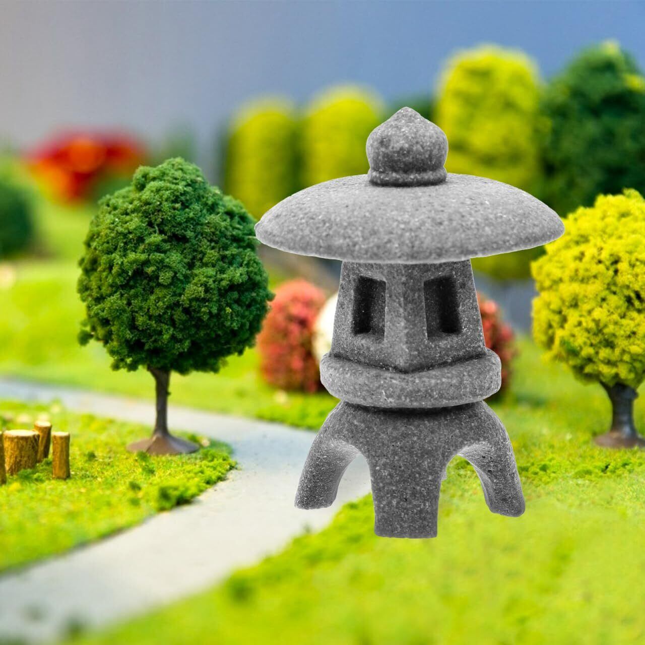 庭用のミニパゴダ:この模擬石灯籠は、カンフーティーペットのような和風アイテムとも相性で、京都枯山水の要素を取り入れた空間づくりに欠かせない一品です。サイズ感も絶妙で、ミニチュア塔として魚缸や盆栽コーナーにもぴったり収まります。