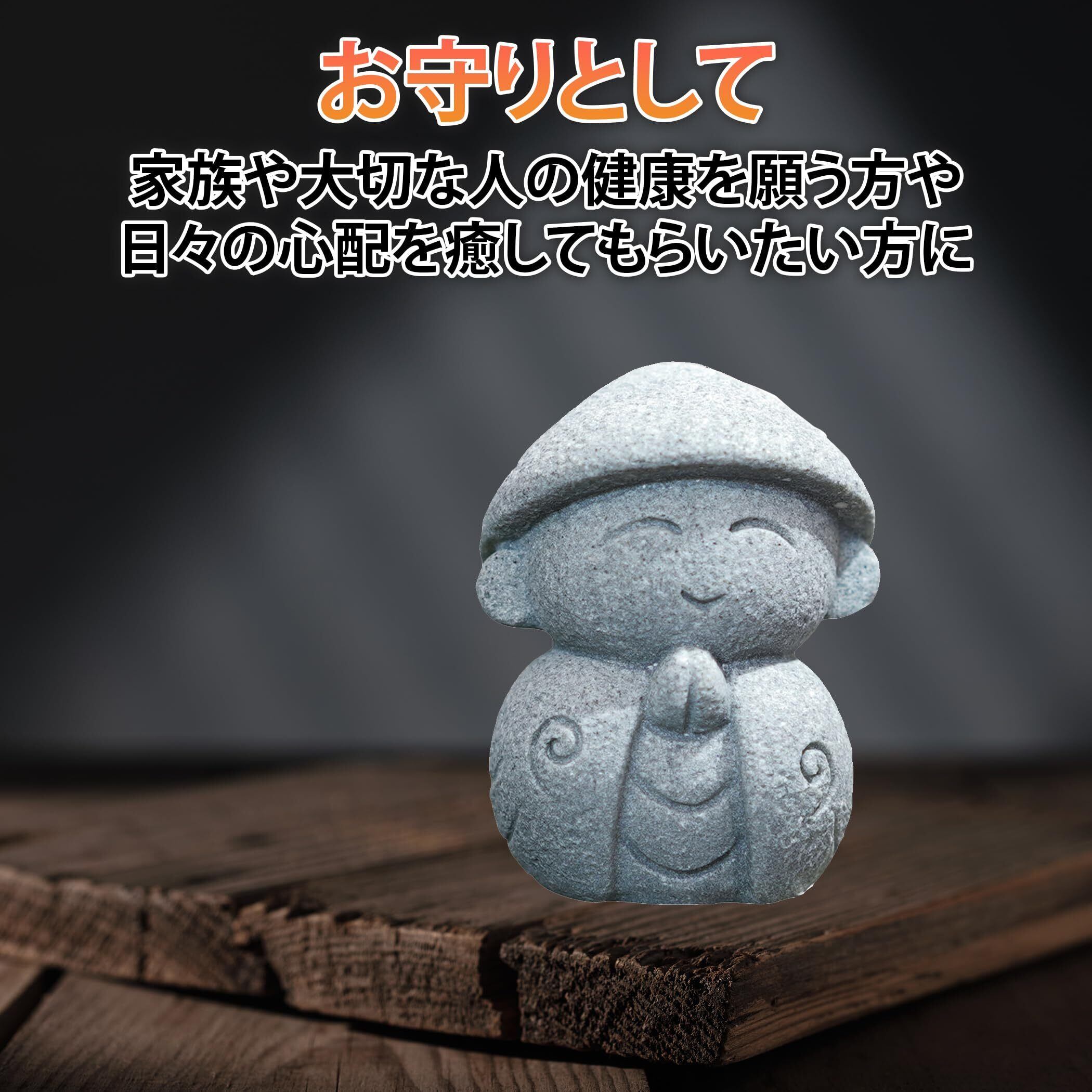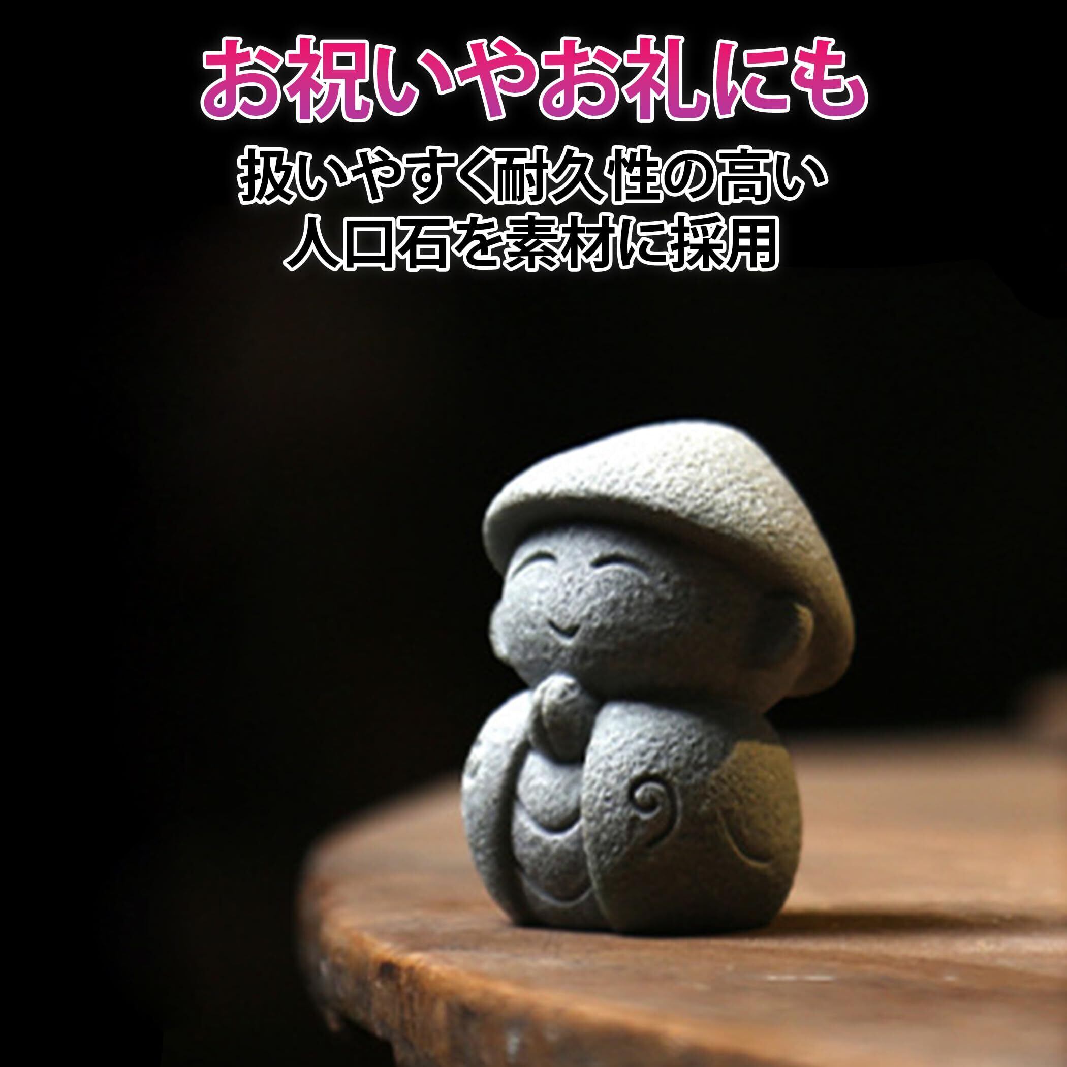 ほっこり癒されるのでお祝いやお礼にも:こちらのお地蔵さんは扱いやすく耐久性の高い人口石を素材に採用しています。重量も約49gと軽量なので、どんな空間にも置きやすく屋内外でお楽しみいただけます。大切な方へのお礼やちょっとしたお祝いの品としてもオススメです。