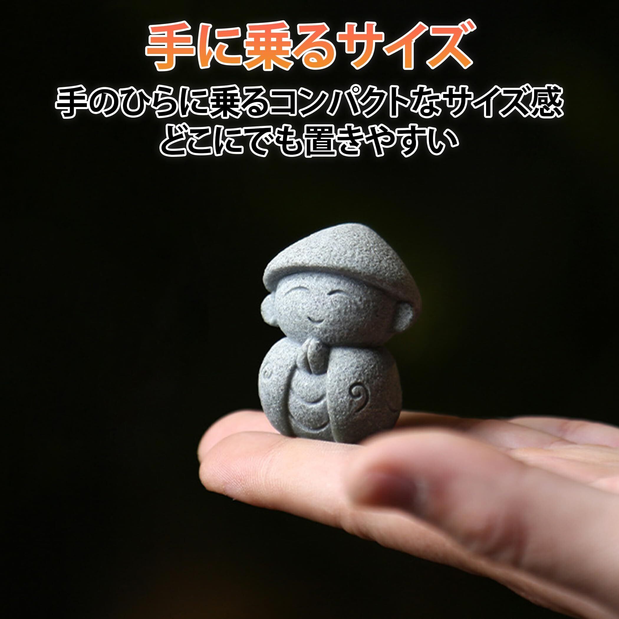 手に乗るサイズでどこにでも置きやすい:こちらのお地蔵さんオブジェは、幅約3.5cm×高さ約4.5cm×奥行約3.2cmの手のひらに乗るコンパクトなサイズ感です。いつでもどこでも飾ったり眺めたりしやすい大きさなので、身近な場所に飾るのがオススメです。