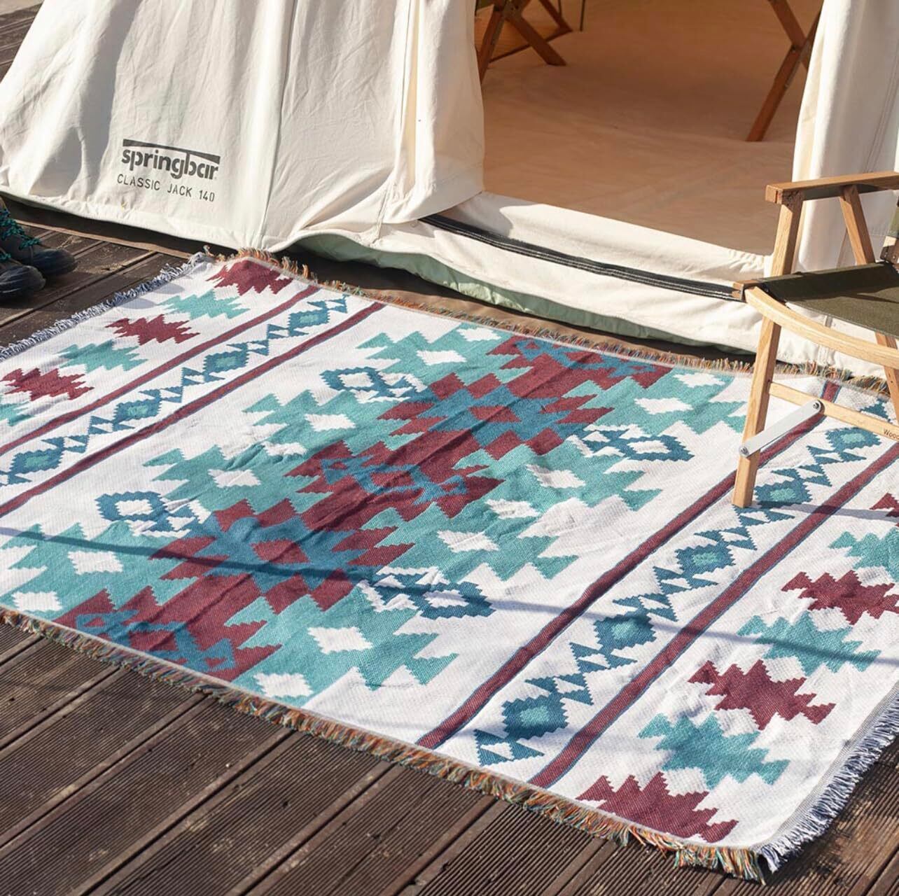 Peel Forest エルパソブランケット マルチカバーメキシカンラグ ネイティブ柄 オルテガ柄 キャンプラグ サドルブランケット 車中泊マット アウトドア バンライフ 130X160cm………