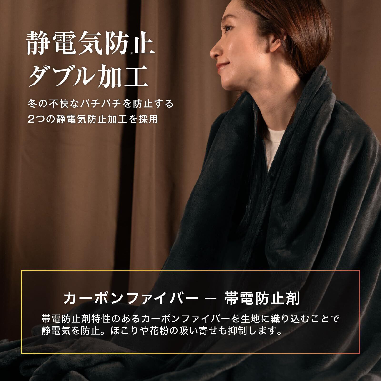 【静電気防止ダブル加工ふわふわあったか毛布】静電気防止ダブル加工が施された毛布は、静電気による不快感を軽減し、快適な使用感を提供します。帯電防止剤と土台生地に含まれるカーボンファイバーが静電気を抑え、冬用の毛布としても安心してお使いいただけます。毛布は軽量でありながら暖かさに妥協しない設計で、極細繊維を使用したプレミアムフランネル生地が体を包み込み、体の芯から温かさが広がります。今年は毛布の毛足をアップし、より滑らかで暖かくアップデート!