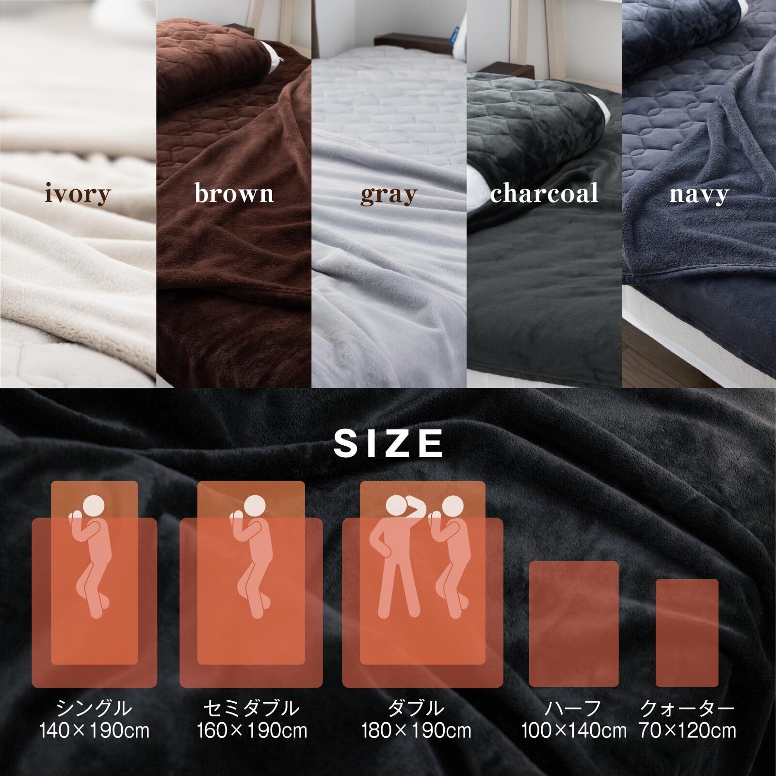 【商品使用&ご注意】サイズ:約140×200cm【カラー】チャコール【素材】高密度プレミアムフランネル生地(ポリエステル100%、静電気防止加工済) 【丸洗い可能】毛布には耐久性の高い素材を採用しているので、繰り返し洗濯していつでも清潔にご使用いただけます。