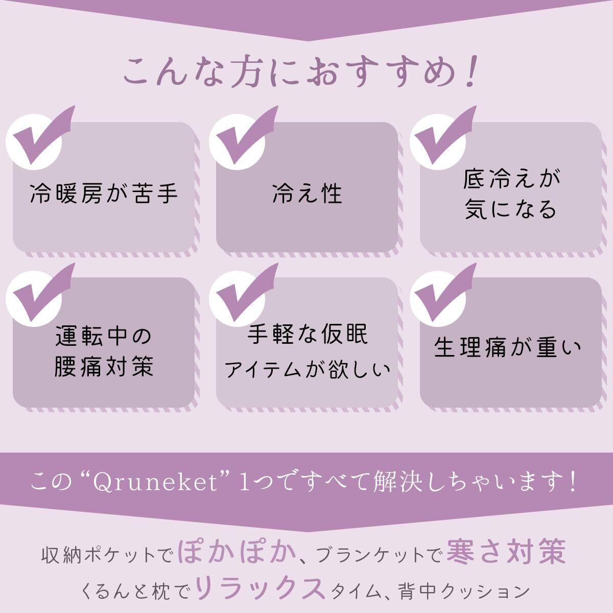 【くるんと丸めてコンパクト】ソロサピエンスのくるんけっと [Qruneket] は、くるんと丸めてクッションにもなるブランケットです。140cm×90cmの大判サイズで、毛布やひざかけとして活躍します。生地にはこだわりの極上起毛素材を使用し、肌触り抜群。くるんとひっくり返して収納できるポケットを備え、枕やクッションに早変わり。収納ポケットにカイロや湯たんぽを入れることもでき、生理痛や冷え性に悩む女性に特にオススメです。