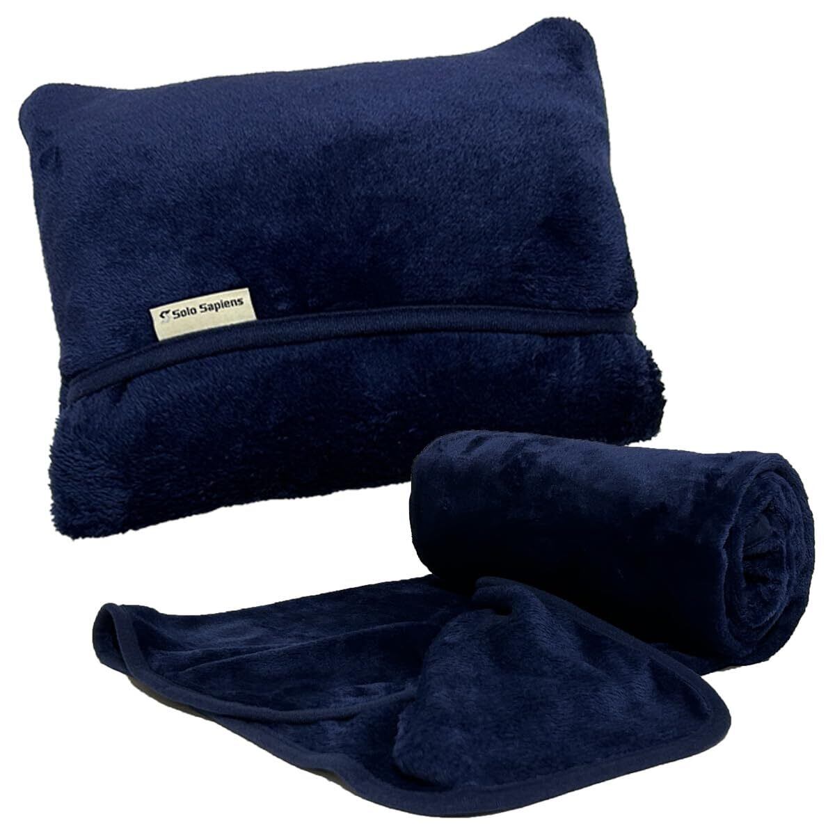 くるんけっと ブランケット 大判 くるんと丸めてクッションに早変わり! 膝掛け ひざ掛け かわいい 仮眠 枕 クッション 毛布 ミッドナイトブルー(140×90cm)