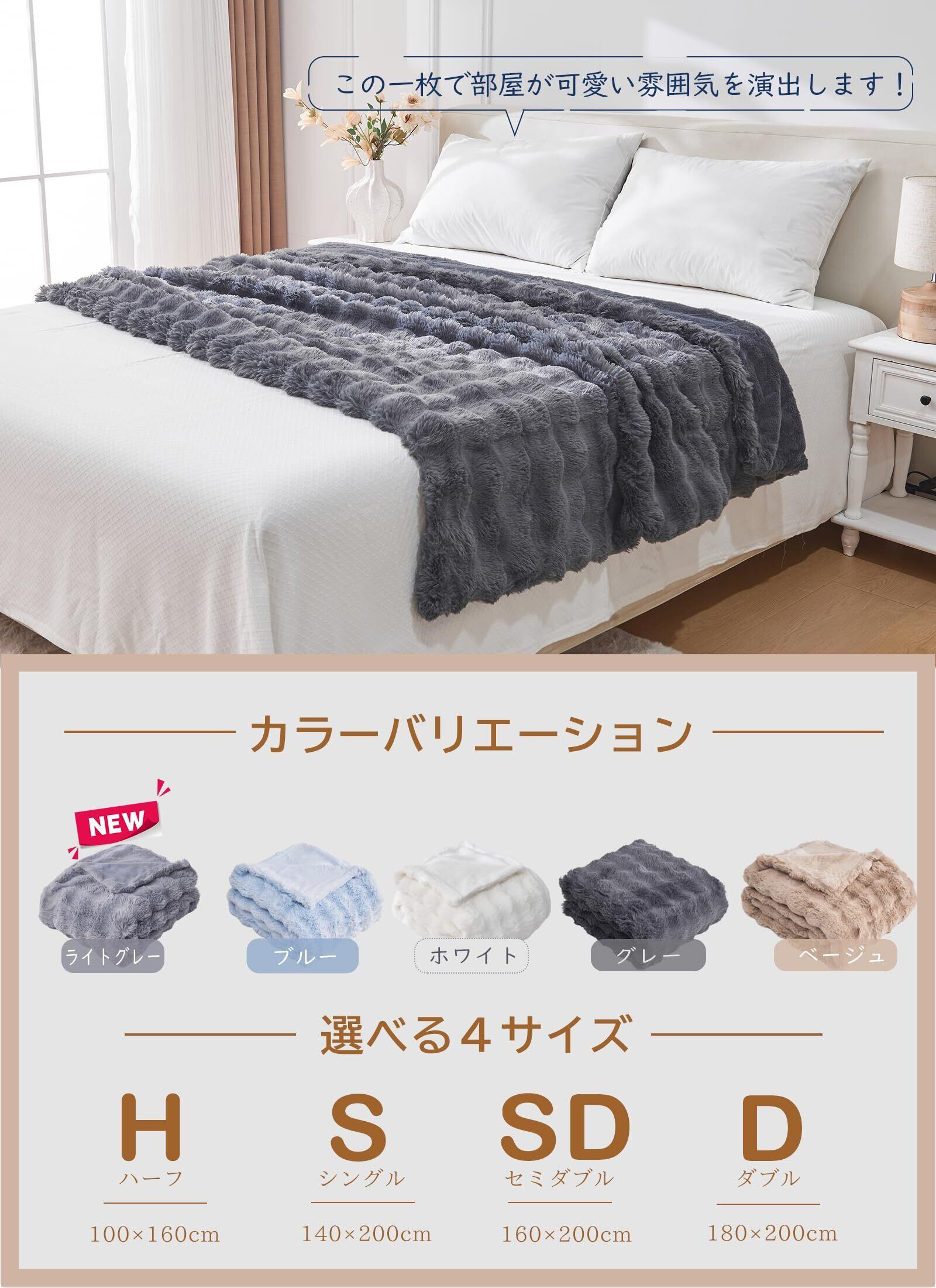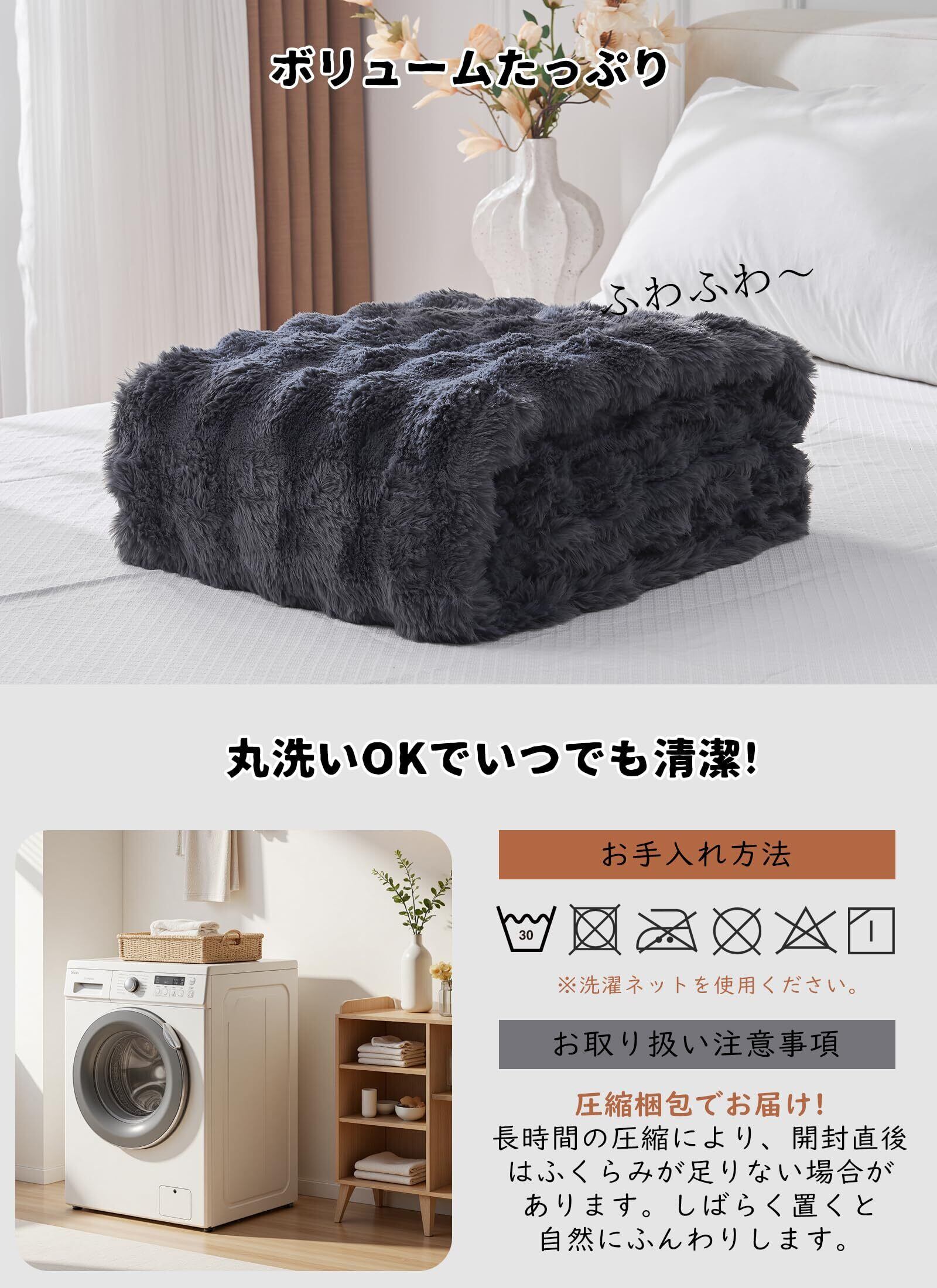 【おしゃれで高級感のあるデザイン】立体的なもこもこデザインが特徴で、インテリアのアクセントにもぴったり。シンプルながら高級感を兼ね備えたブランケットは、ご自宅用はもちろん、新築祝いやクリスマスプレゼントとしても喜ばれます。高精度な縫製と二重ロック縁仕様により、ほつれにくく長持ち。さらに静電気防止加工を施しており、冬場のパチッとした不快感やホコリの付着を軽減。日常使いに配慮した安心設計です。