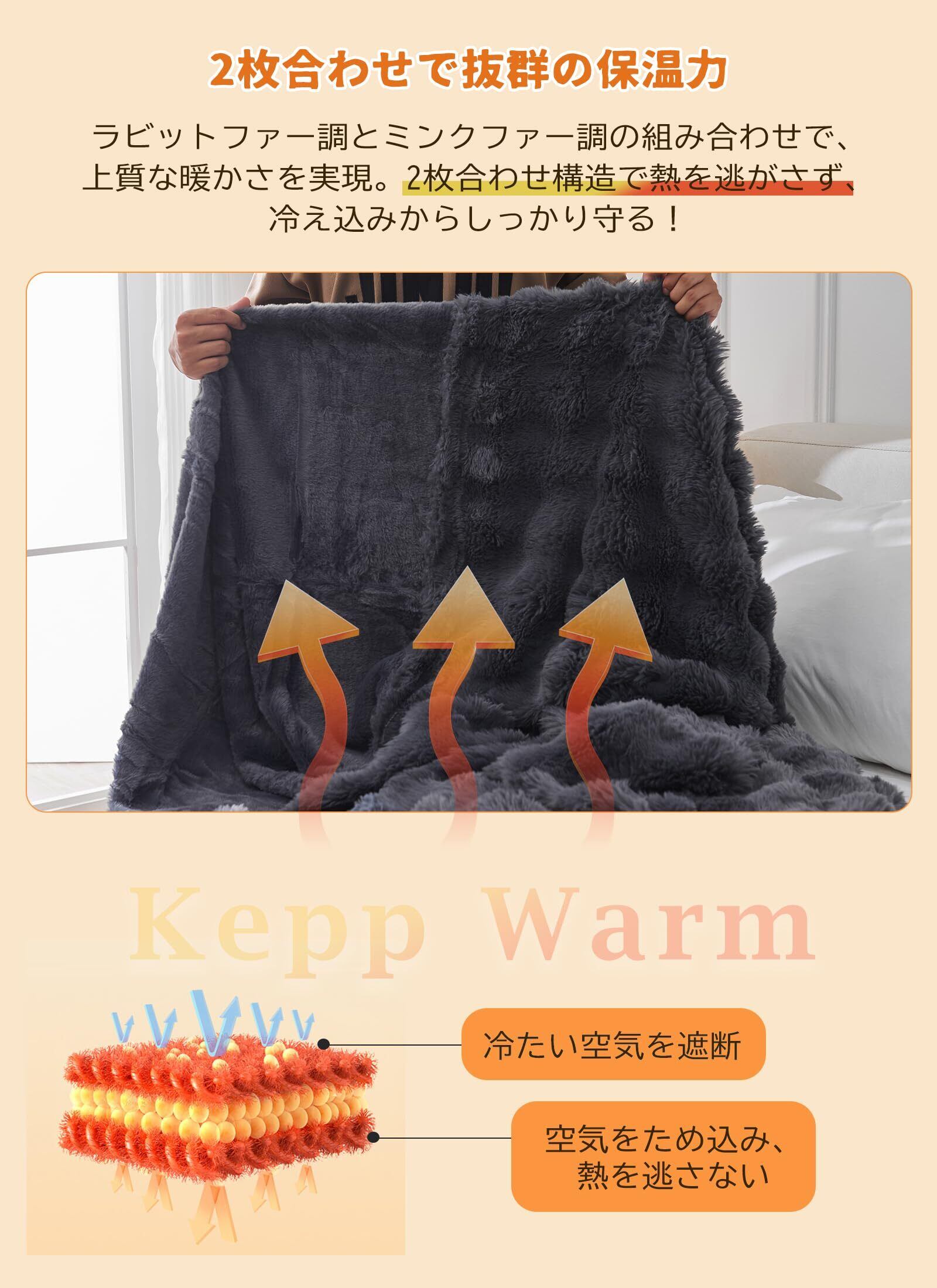 【2枚合わせ構造が叶える優れた保温力】二重構造により空気の層を閉じ込め、一般的な毛布に比べて高い保温性を実現。1枚でも十分な暖かさを感じられ、掛け布団と合わせることでさらにぬくもりアップ。寒い冬の夜も快適に眠れる厚手の冬用ブランケットです。