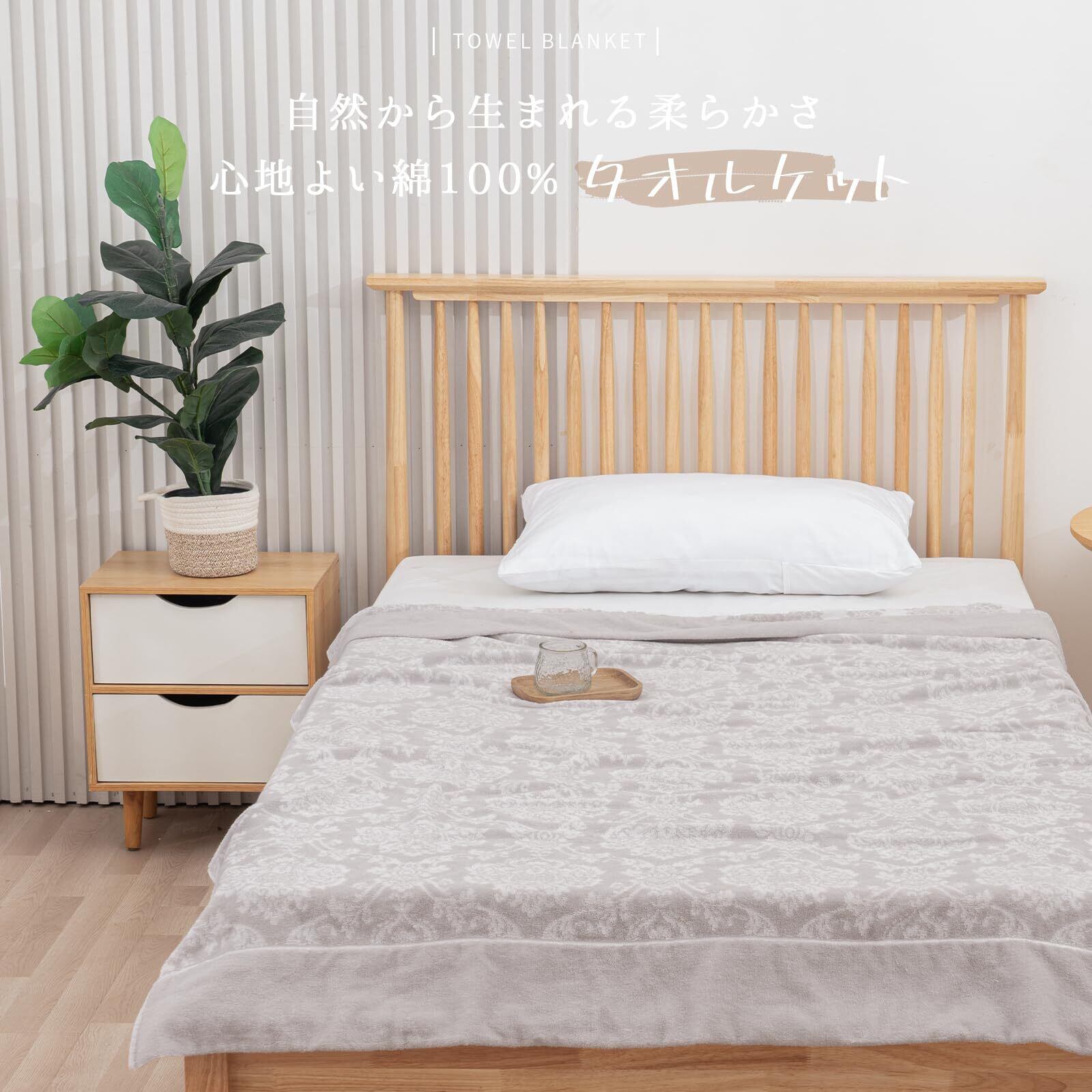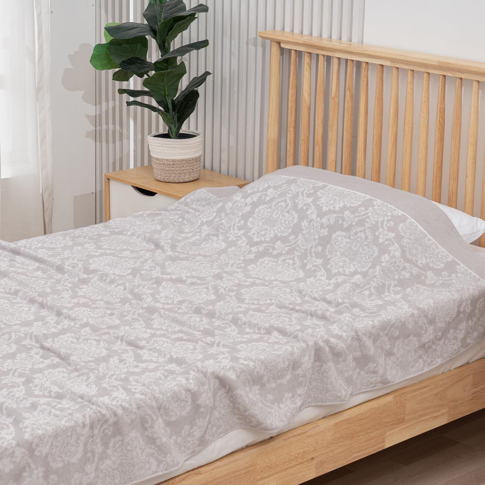 SE タオルケット シングル 夏用 ブランケット 綿100% おしゃれ 柔らかい ふんわり 吸湿速乾 抗菌防臭 洗える オールシーズン快適 140cmx200cm (からくさ·グレー) 「SE Softexly」