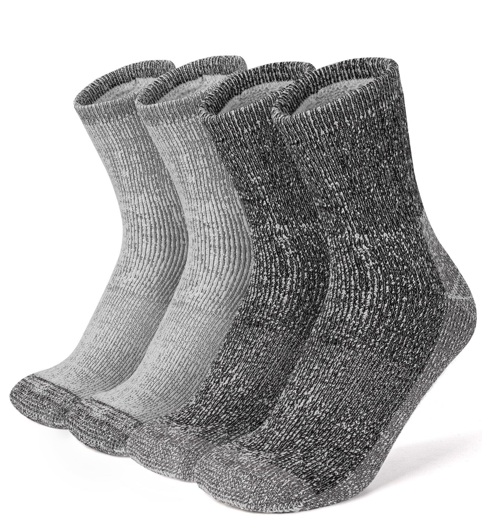 「氷点下でも着た瞬間から暖かい!」:この防寒靴下は天然メリノウールを使用しており、一本一本の繊維が複雑に絡み合い、その間に空気を留めることで高い保温性と断熱性を発揮してくれて、暖かさが着た瞬間から感じられます。柔らかい裏起毛は通常の冬用靴とほぼ同じ驚異の厚さで、保温性をさらに高め、極寒の中でも足首からつま先を包み込むじんわりとした暖かさが長時間持続します。