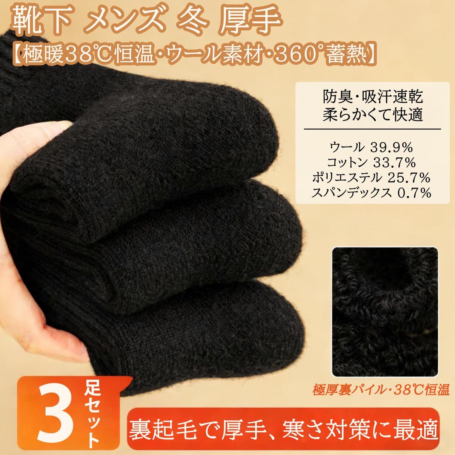 [DINUQI] 靴下 メンズ ウール靴下 冬用 厚手 あったか 防寒 3足セット 「天然ウール」 保温性 吸汗消臭 耐久性に優れ 登山・アウトドア・日常用 24-28cm 防寒ソックス 暖かい 蒸れない 男女兼用