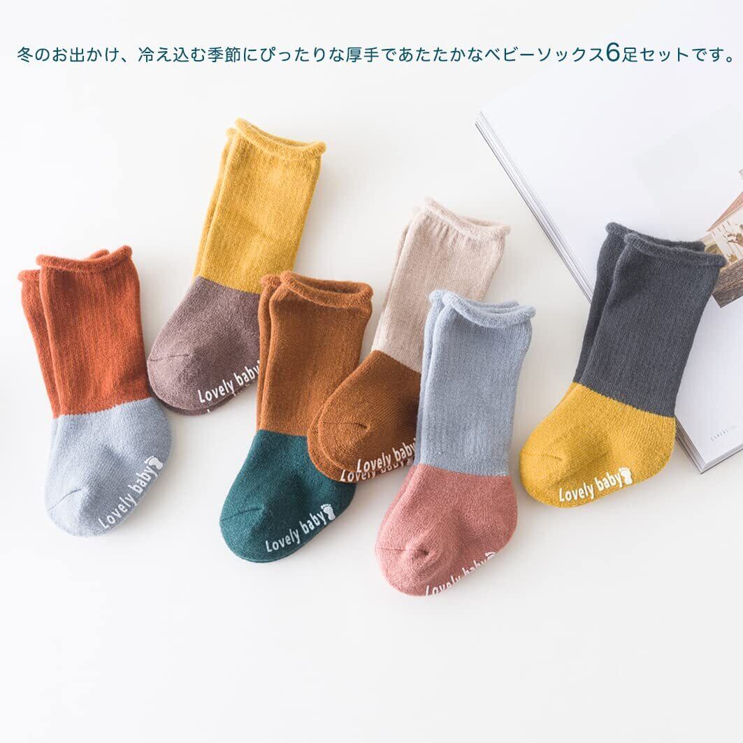 [MOMSMENU] 赤ちゃん 靴下 冬 分厚くて暖かい 6足セット ベビー 靴下 滑り止め付き 綿 快適 8cmから14cm