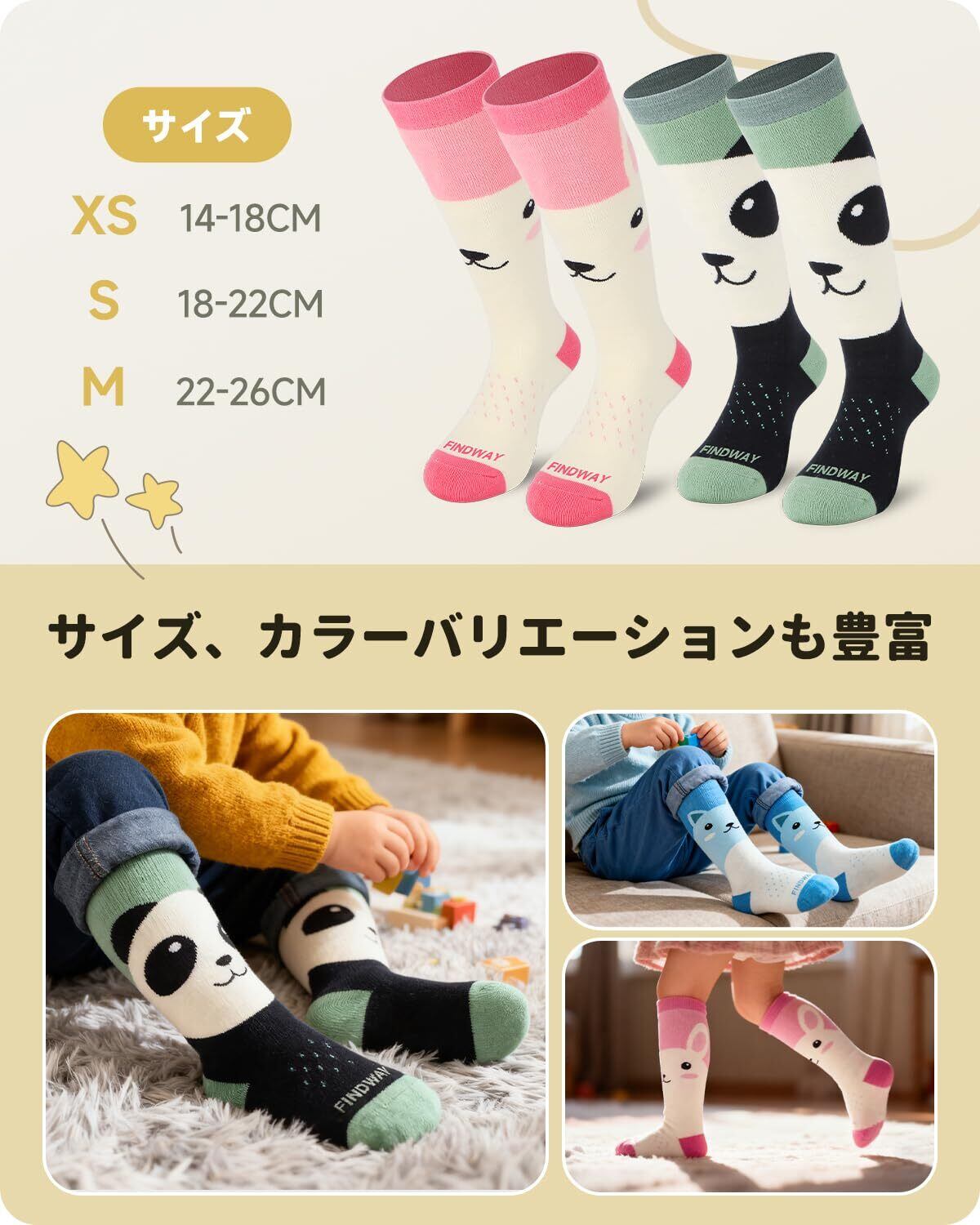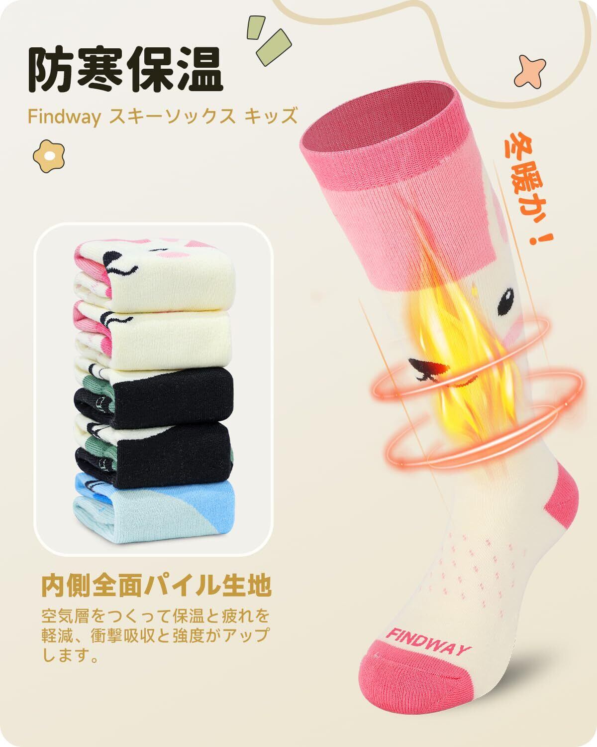 【全面パイル生地で足をしっかり保護、保温】Findway スキー靴下 キッズ、パイル編みがしっかりで暖かいです!ソックスの内測は爪先部分までしっかりとした立体的なパイル編みが厚みが増すことで、衝撃吸収と強度がアップします。ズレや締め付けを軽減、足への衝撃やスキーなどによる締め付けも軽減できます。冬のスポーツ時にしっかり足を保護します。履き心地も柔らかくていい子供用スキー靴下、スキー、スノーボード、ハイキング、サイクリング、野球、アウトドアスポーツにも最適します。ウィンタースポーツに限らず、極寒ときに履くと防寒対策になります。明るく目立つデザインで子供に履かせるとおしゃれですね。