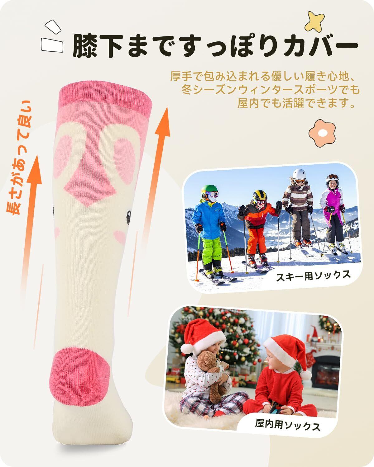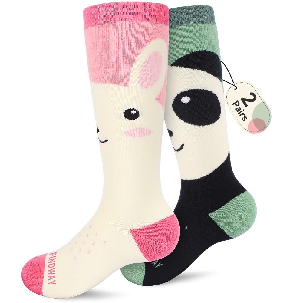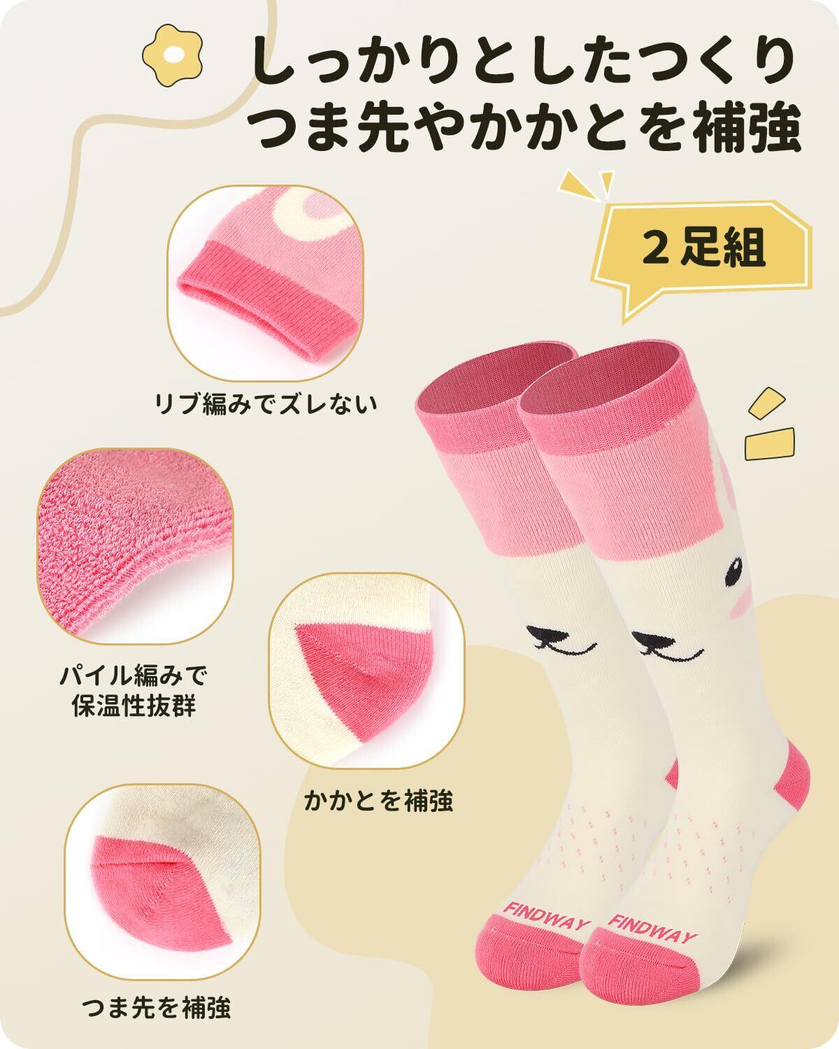 [Findway] 【2足組】 スキー靴下 キッズ スキーソックス 子供用 防寒保温 吸汗速乾 抗菌防臭 厚手 冬用 暖かい 柔らか かわいい 通気性 伸縮性 耐久性 冬 スキー スノボー スポーツ用 3-14才向け