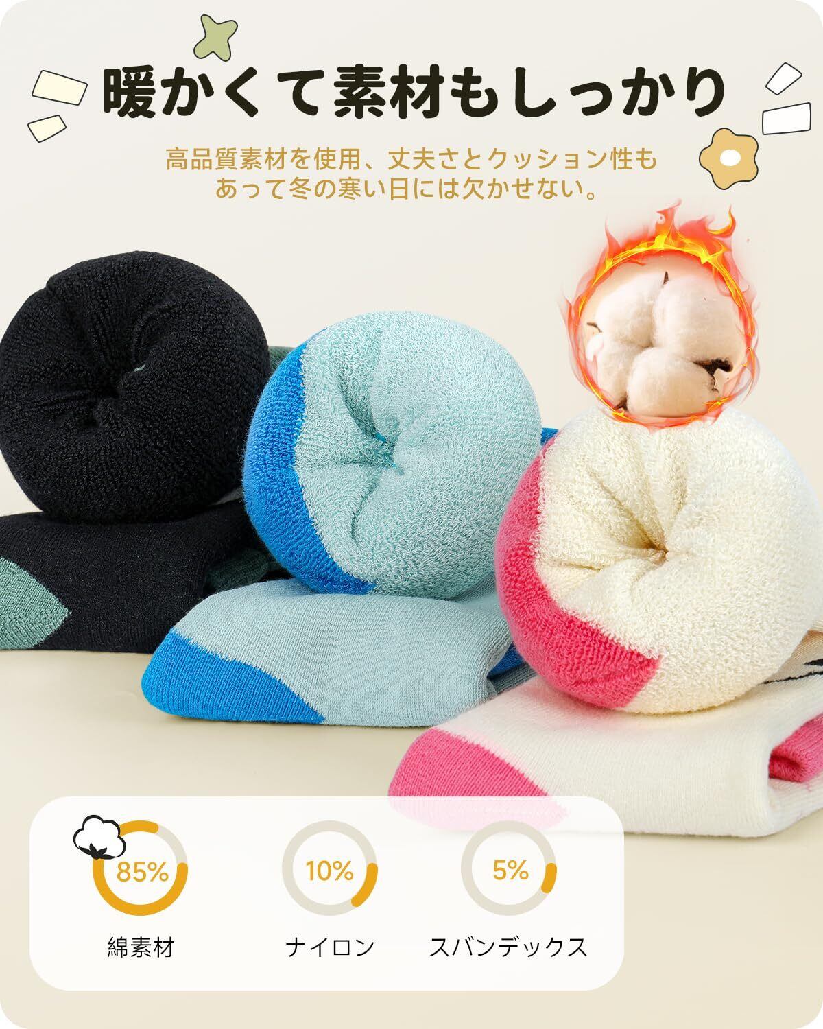 【吸汗・速乾、抗菌・防臭】子供用スキーソックス、高品質綿紡糸を使用したので保温性と吸汗速乾性を併せもったフィット感抜群です!!抗菌加工により、いやなニオイの発生を軽減、雑菌の繁殖を抑制できます。清潔さをキープし、スキーなど雪国での激しいスポーツにも適しています。スキーソックス キッズ、肌触りも柔らかく、結構分厚くてしっかり作られており、伸縮性が高く厚みがあり、しっかりした密度で、滑らかな生地です。フィット感が良く、足首や土踏まずの締め付けもきつく無くて脱ぎやすい設計です。湿気を吸収しやすく、放散しやすい機能もあります。