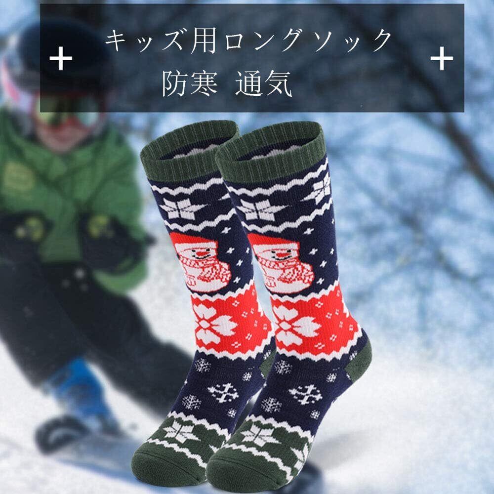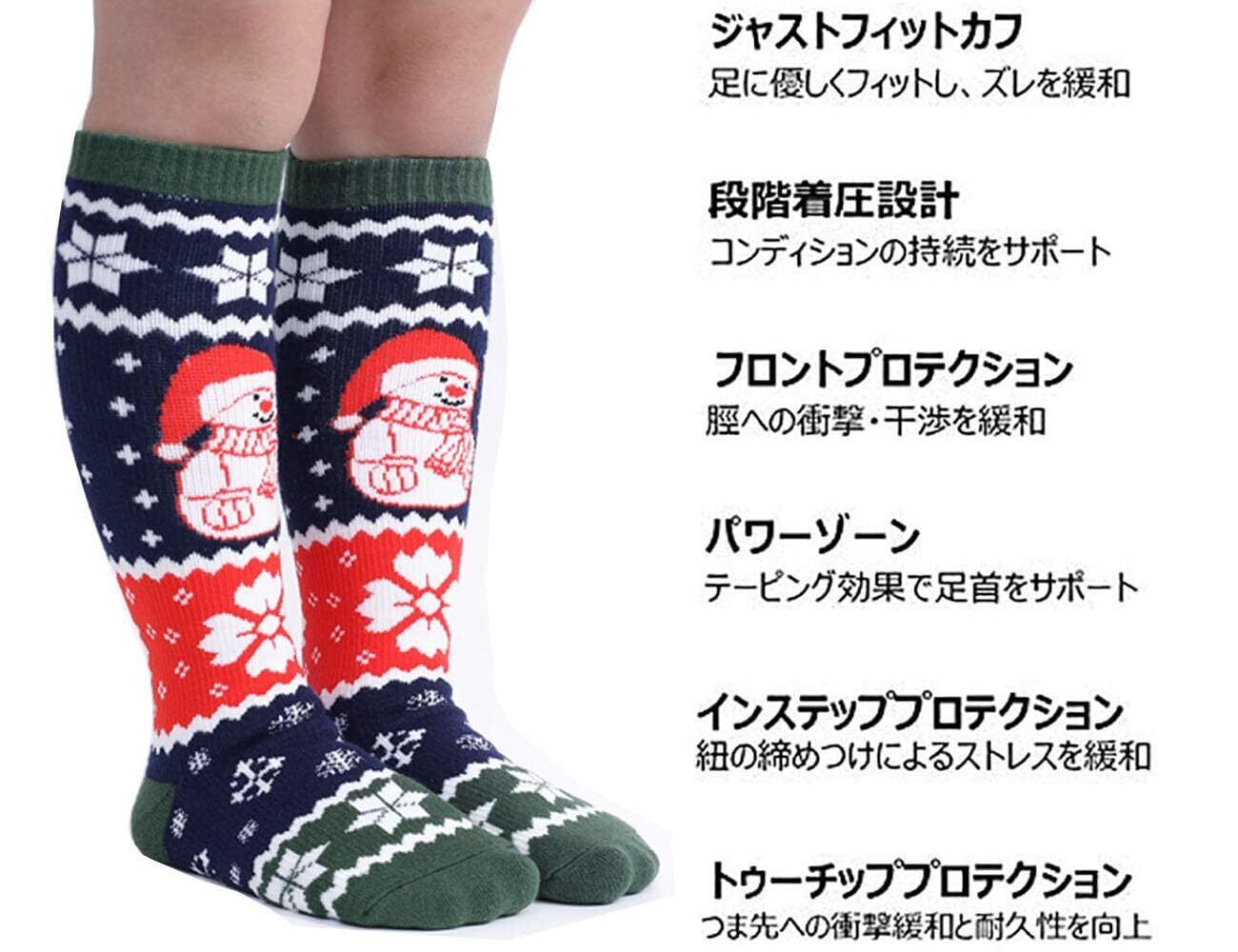 [AX] スキーソックス キッズ 2足組セット スノーボード ソックス 子供用 ジュニア 厚手 パイル編み 防寒 通気
