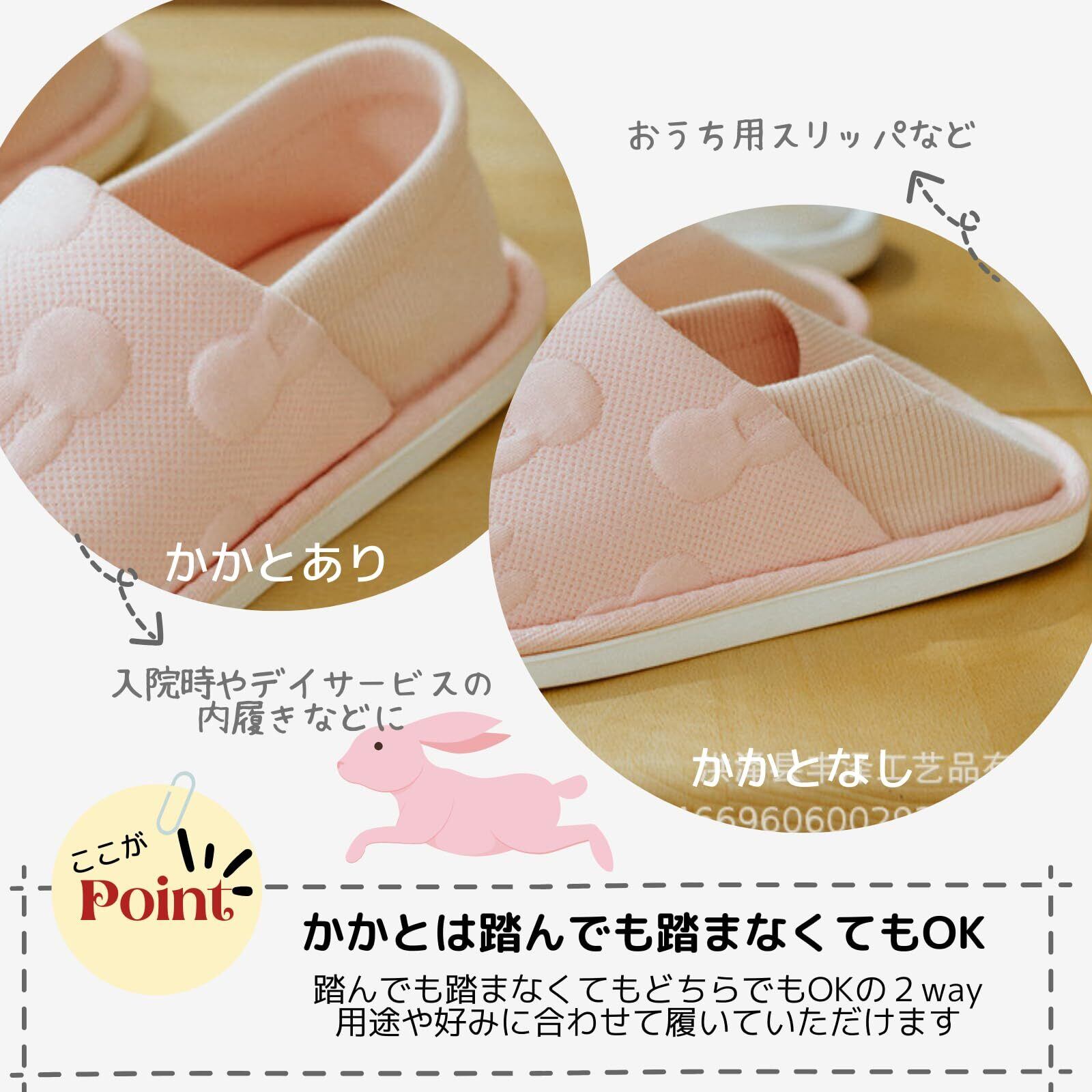 [ソユル] うさぎ ルーム シューズ 室内履き スリッパ かかと あり なし 2way すべり止め 付 介護 入院 リビング キッチン トイレ シンプル 洗える レディース