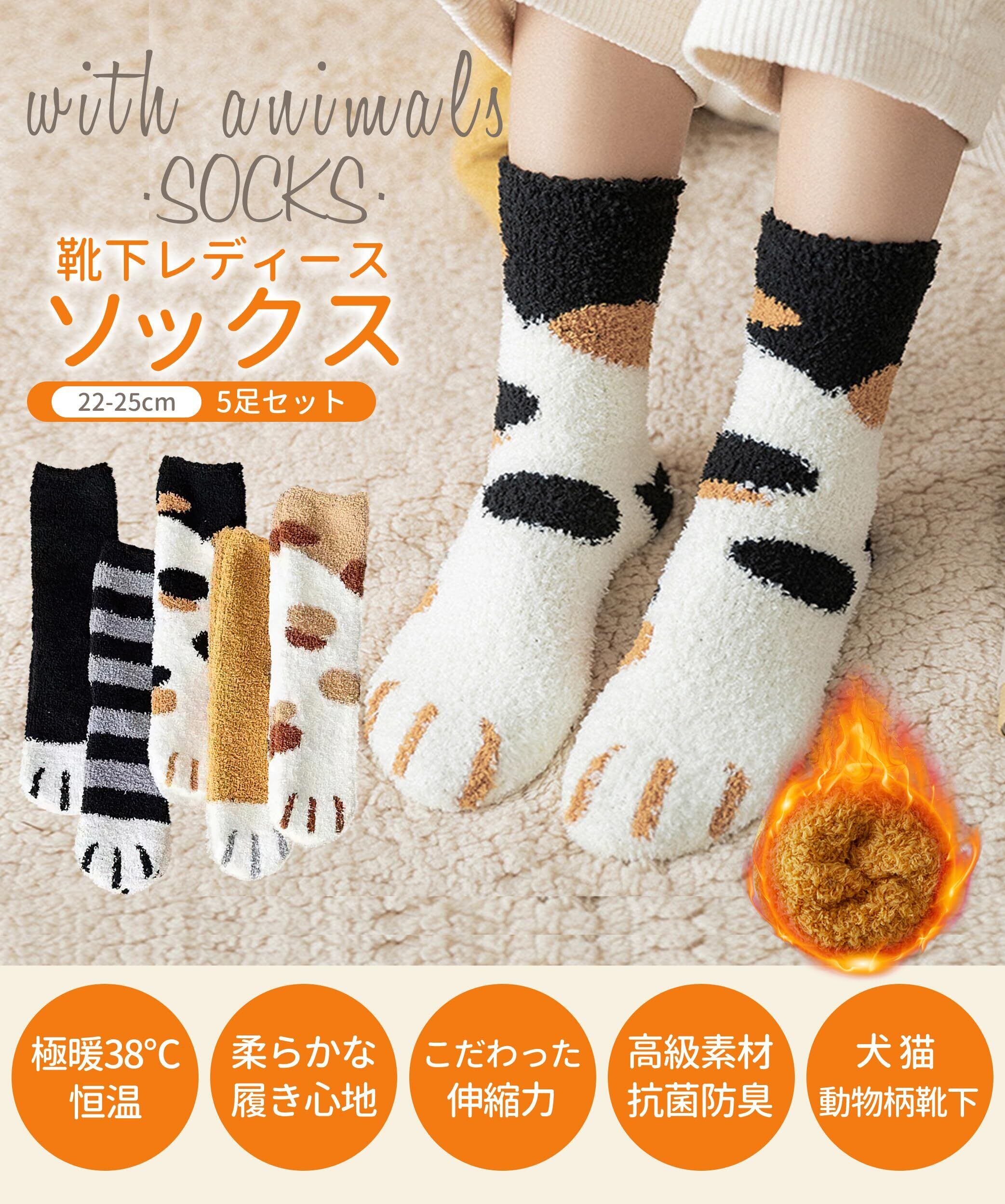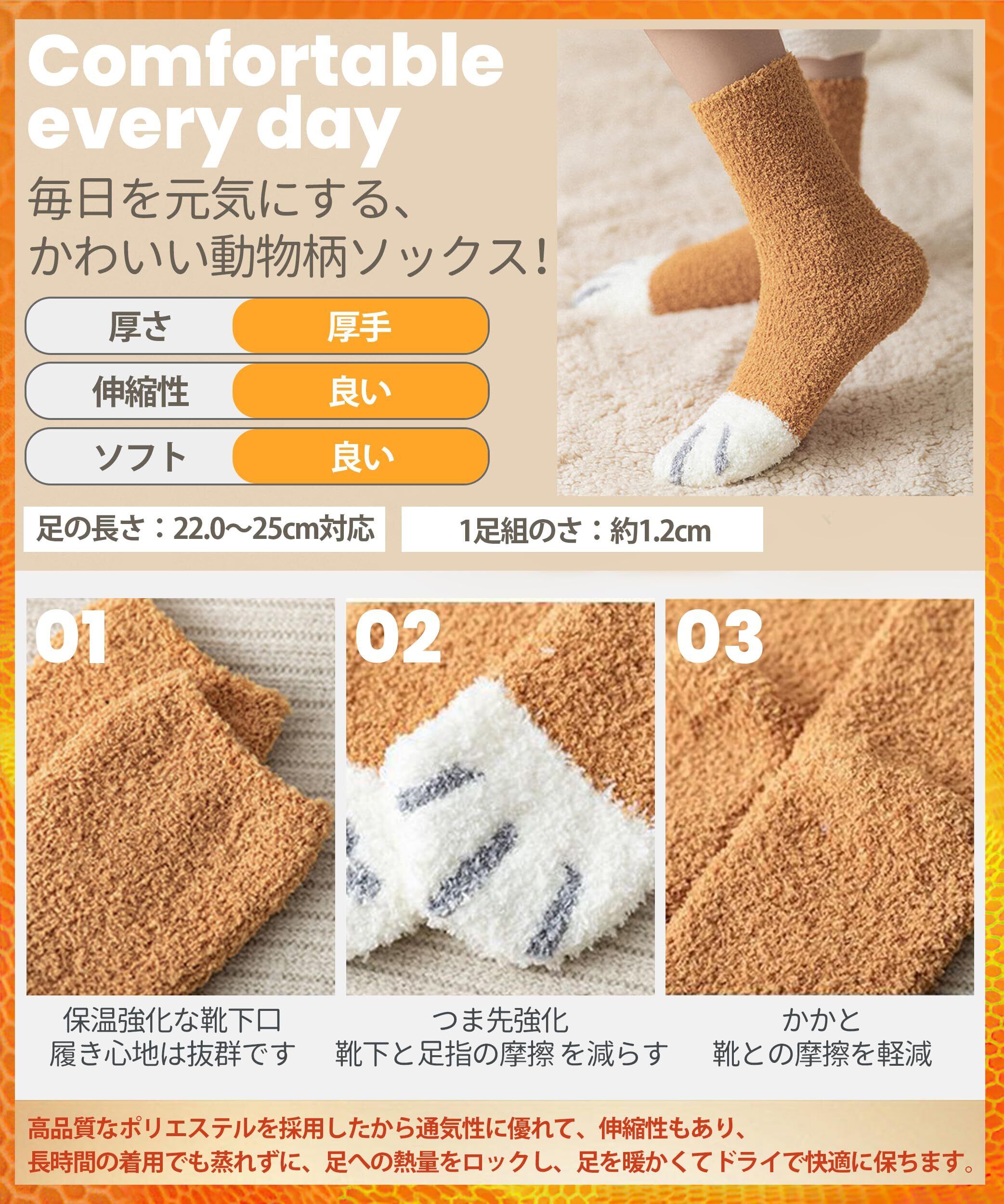 【5足セット女の子用可愛いソックス動物柄】靴下の柄は細かくで丈夫で、おしゃれユニークなエレガントで、カジュアル中に女性の可愛い魅力感じされます。かわいい猫の爪先や犬柄、熊柄など、動物柄のあったかソックスは、女性の足首をキュートに演出し、キュートな着こなしにもマッチする。この靴下を履くだけで毎日が元気になりそう!人々の中にファションで人気な秋冬用 靴下 レディースです!秋冬の日に足からの小物でもっと自信を演出しましょう。