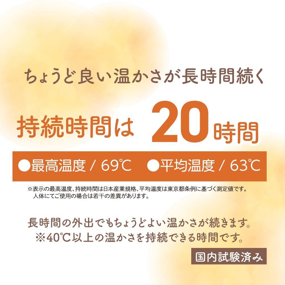 40℃以上の暖かさを20時間持続。(最高温度69℃、平均63℃)