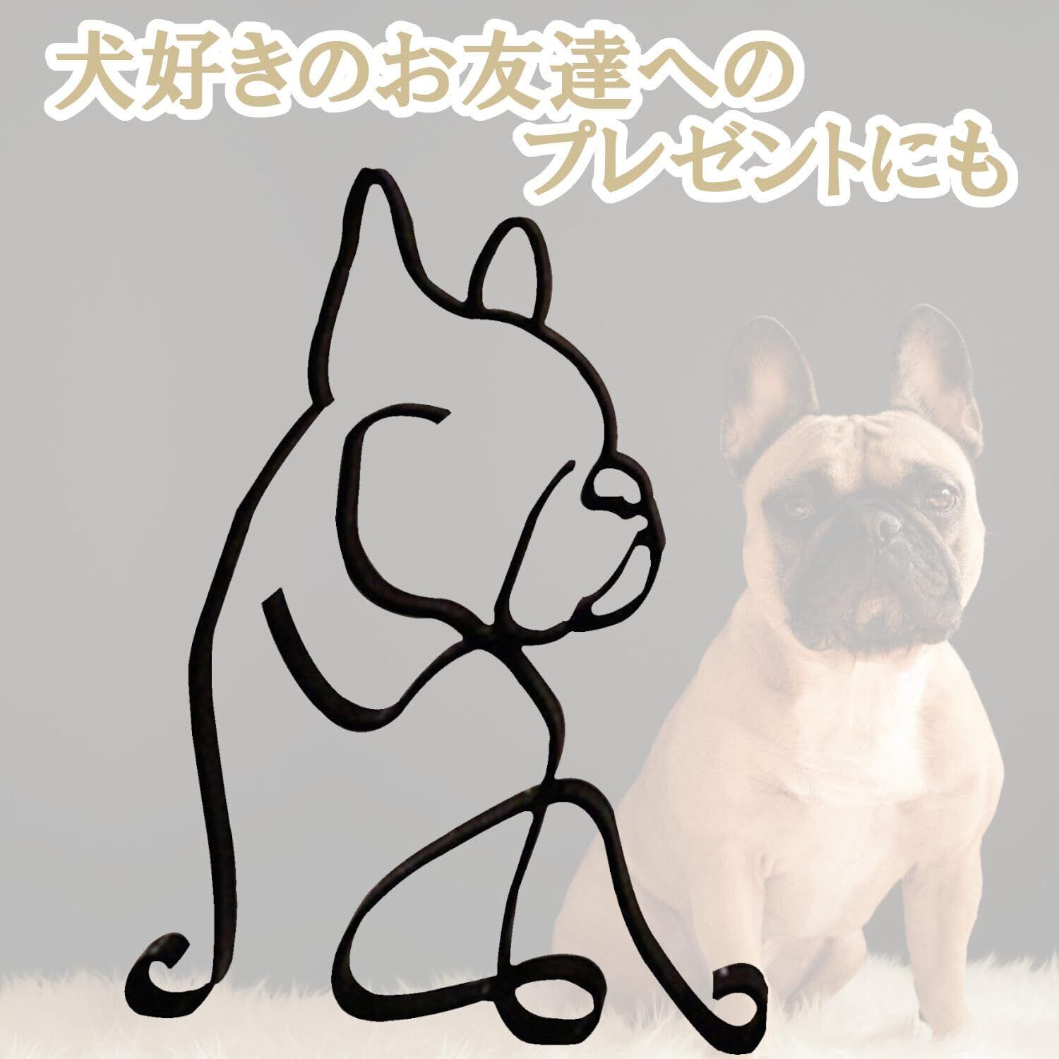 【シンプルで可愛い】フレンチブルドックをモチーフにしたシンプルなワイヤークラフト/ワイヤーアートインテリア雑貨の置物です。
