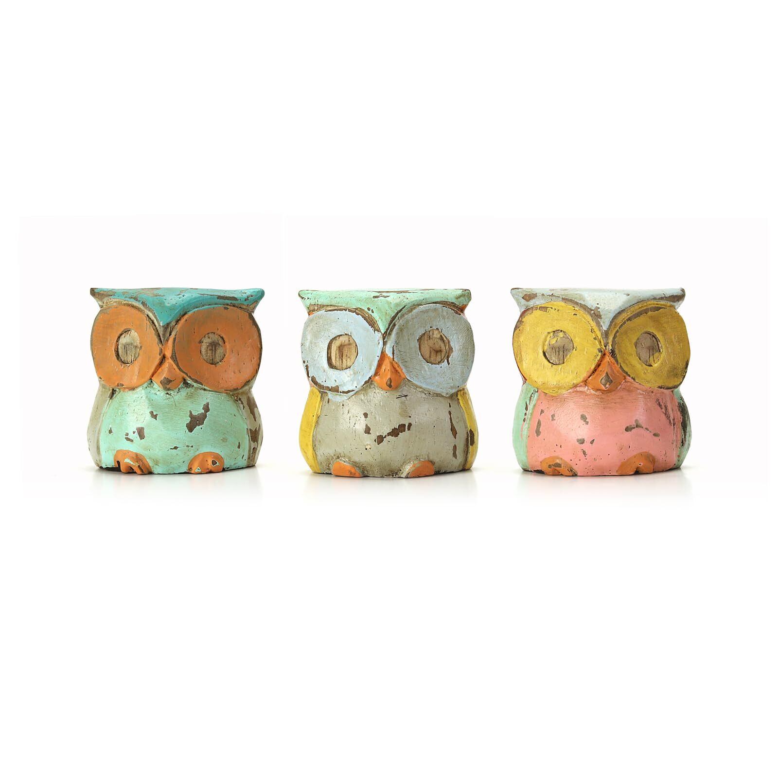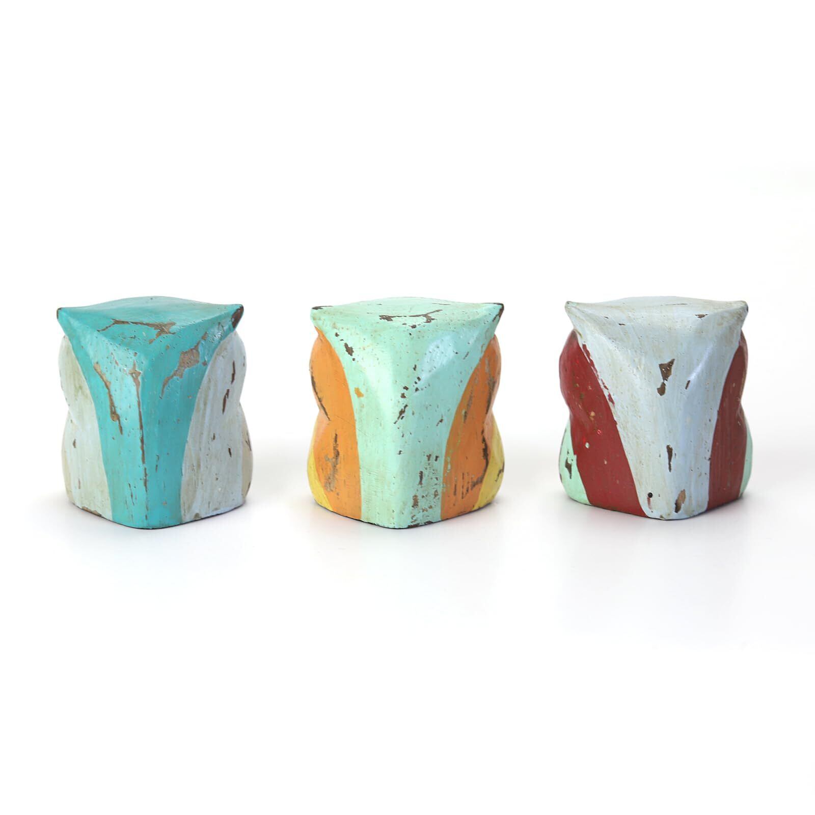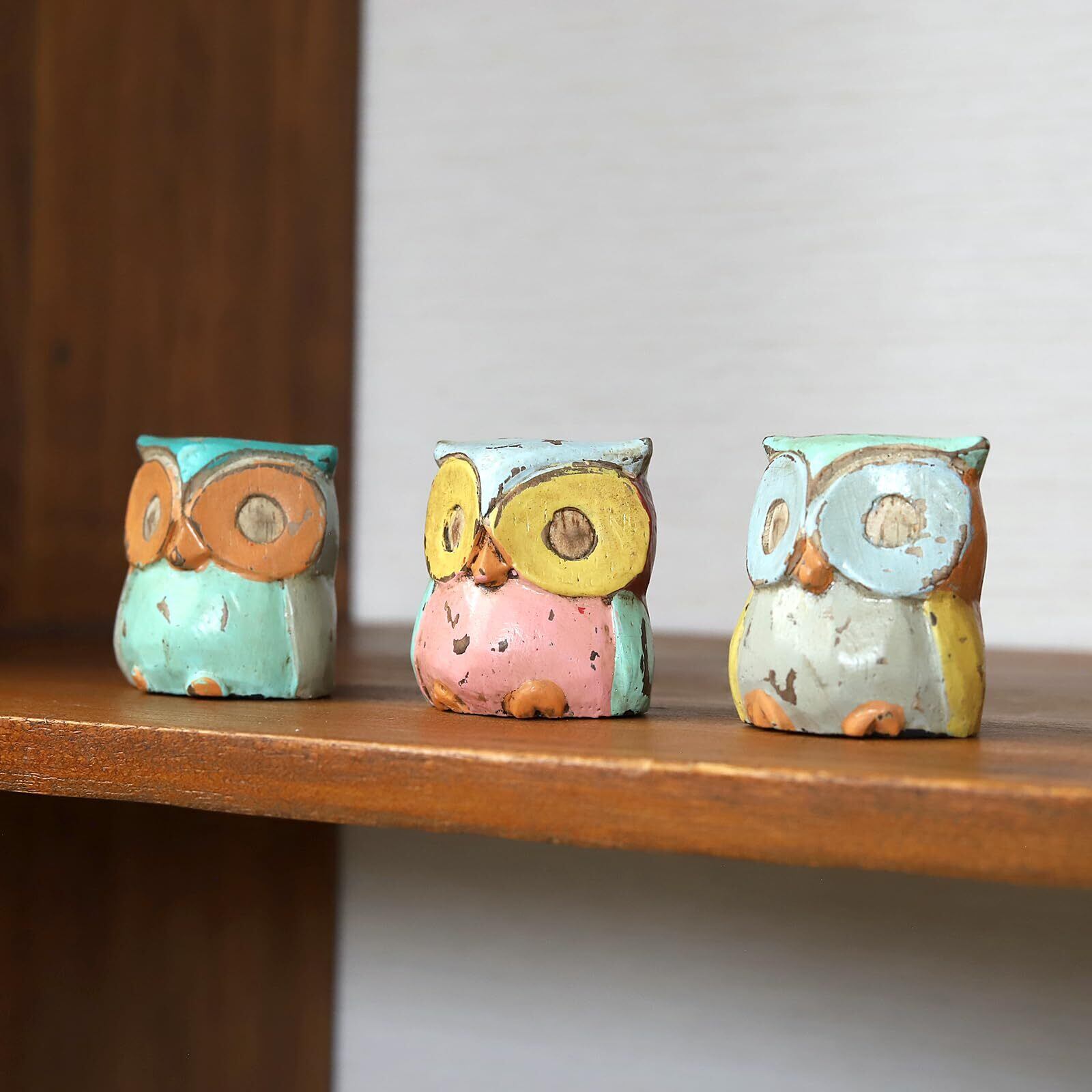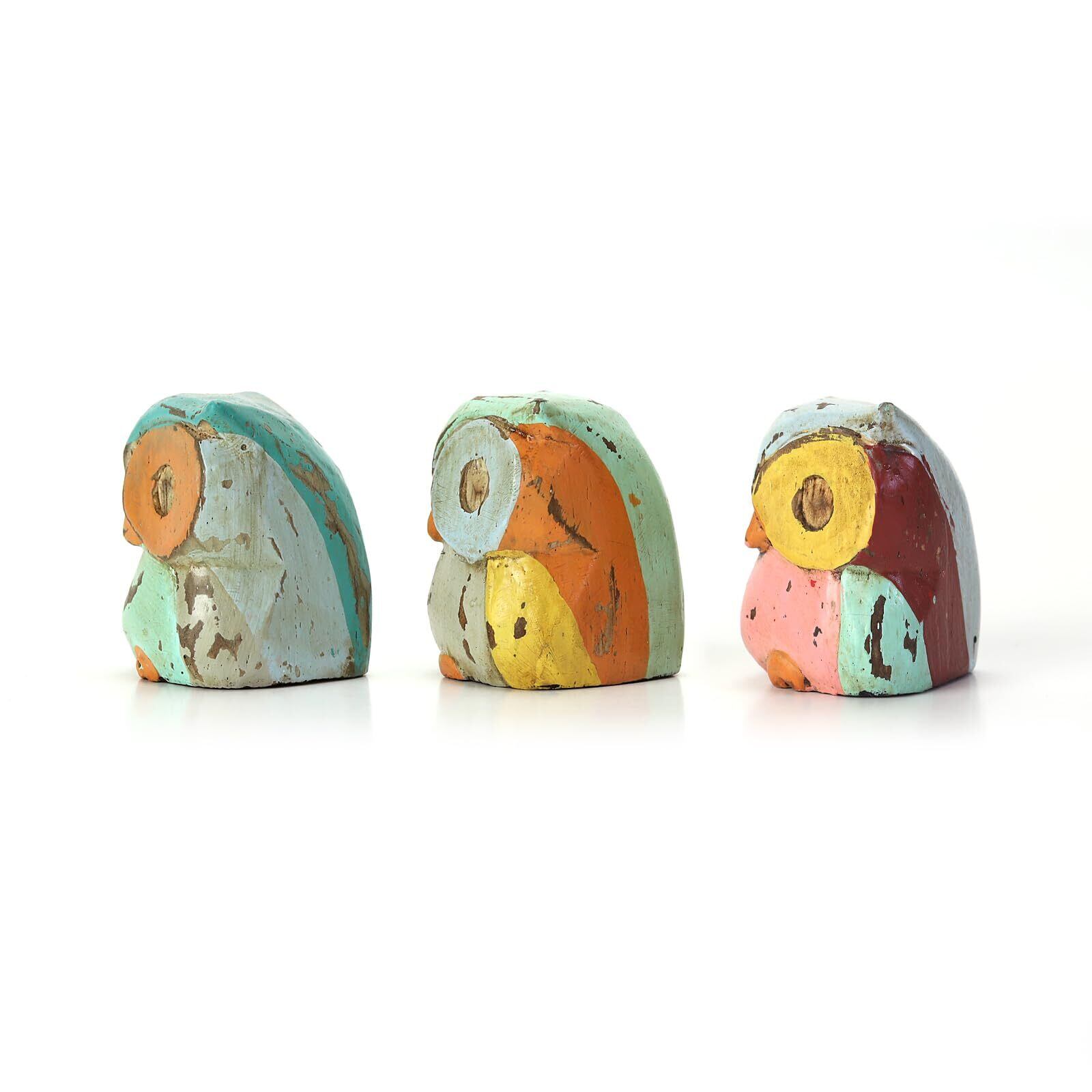 バリ雑貨専門店Cocobari(ココバリ)で人気の『木彫りのフクロウの置物 3個セット Sサイズ』です。 同じサイズ3カラーがセットになっています。