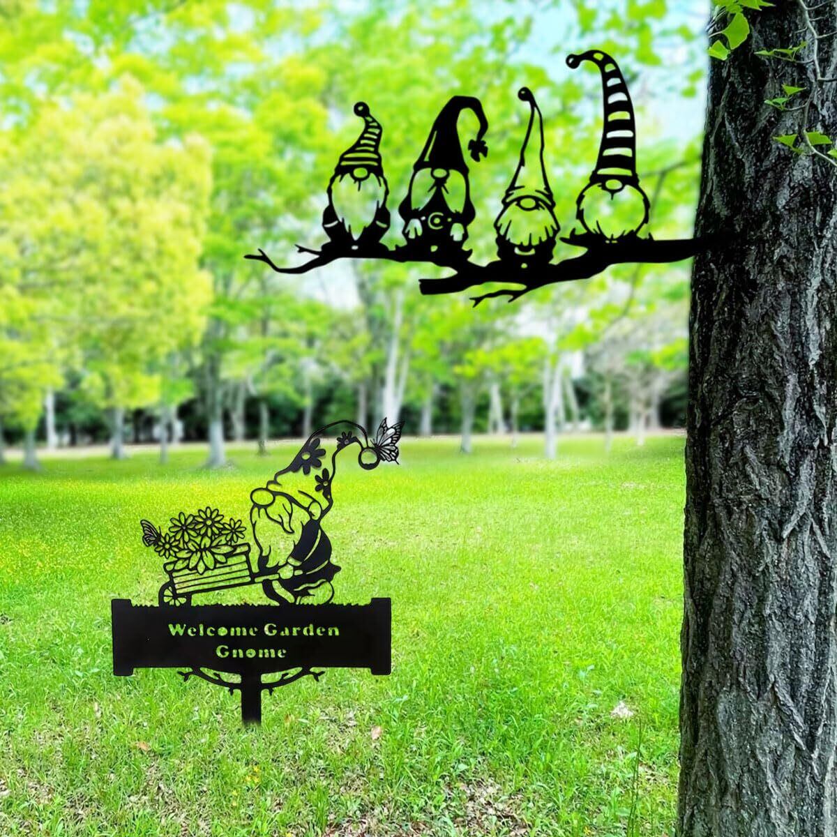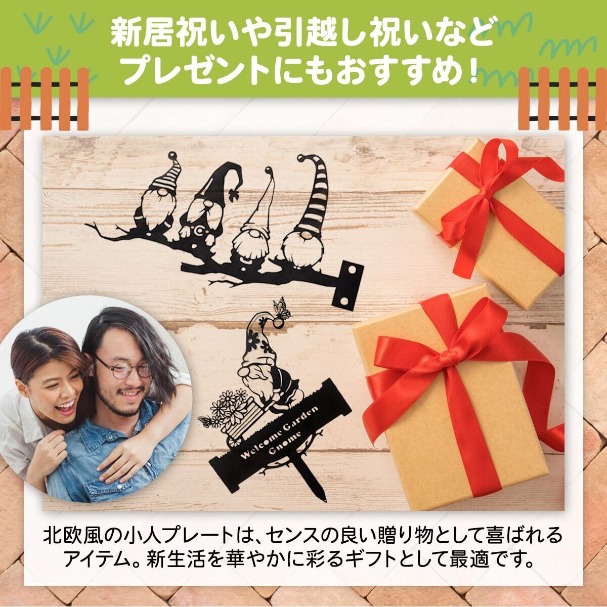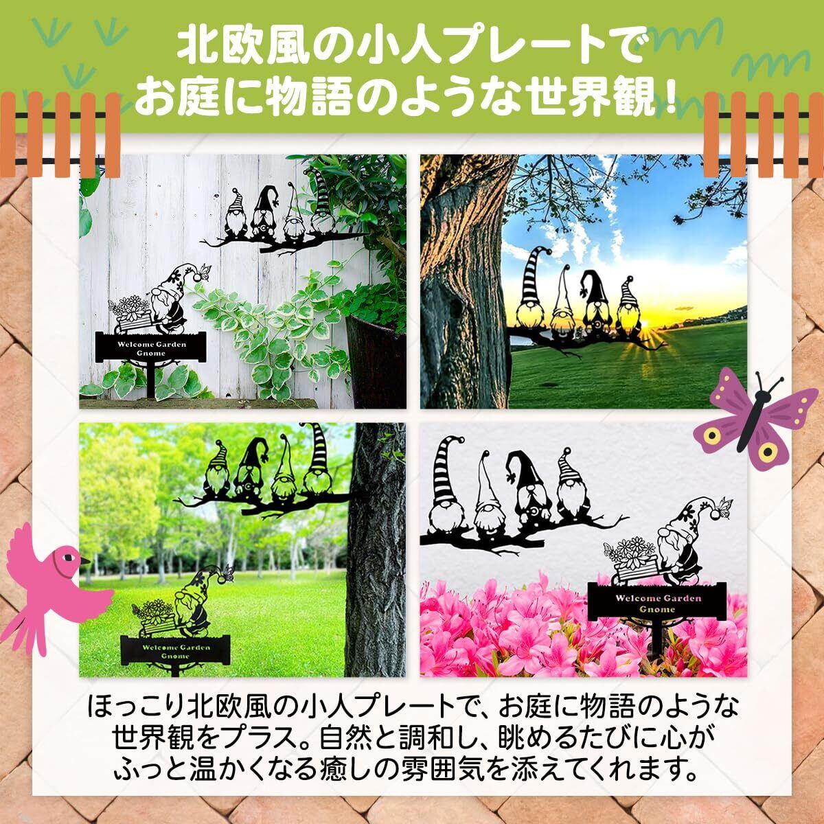 ガーデンプレートは、可愛い小人のガーデンオブジェ。庭、ガーデン、玄関のウェルカムプレートにも。土に埋設する縦埋めタイプと樹木に埋設する横埋めタイプの2個セット。北欧風、アンティーク、アート風のオシャレなデザイン。