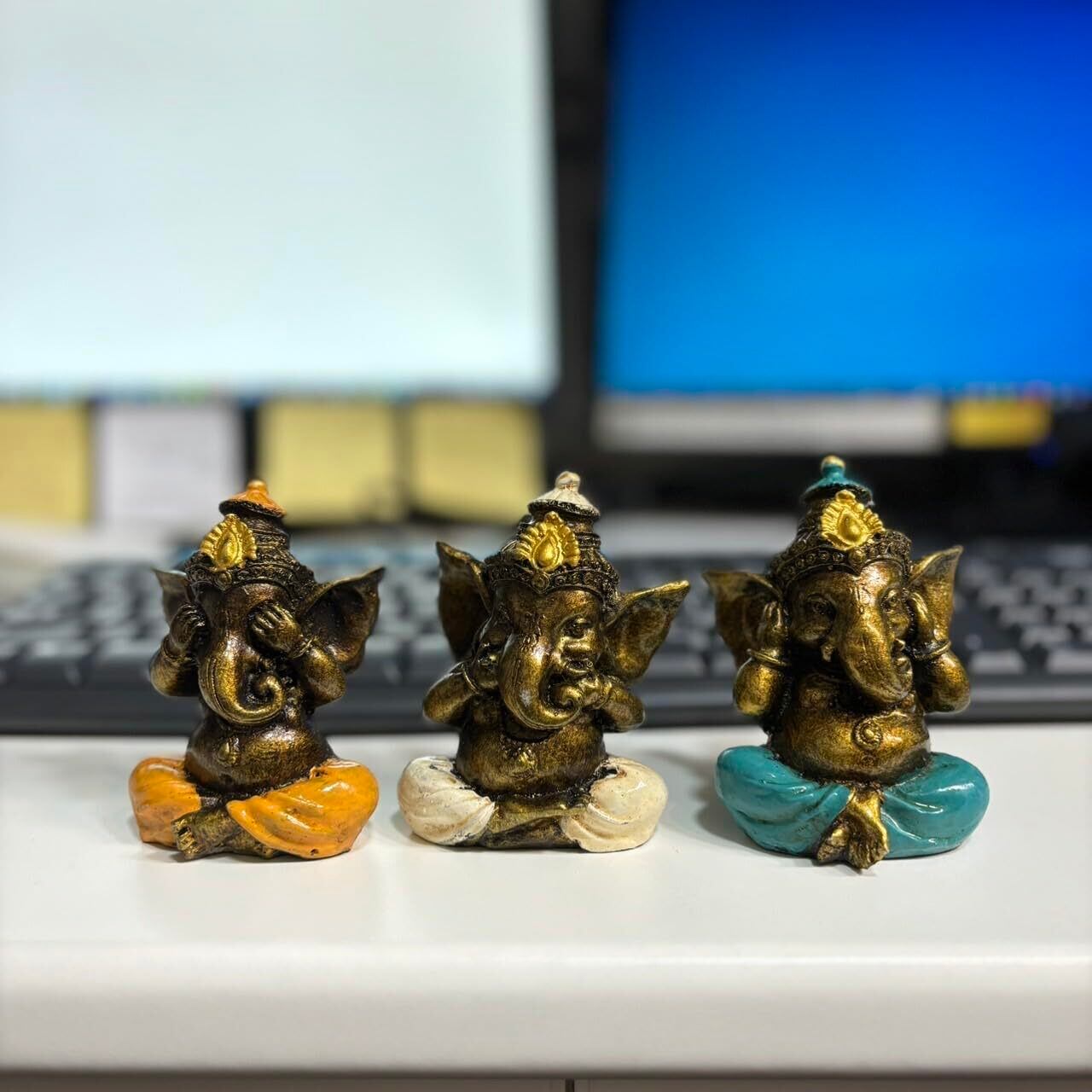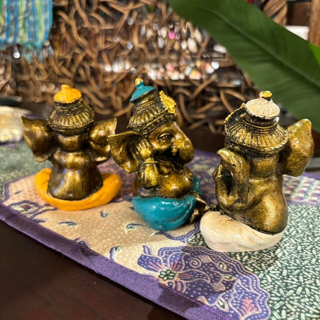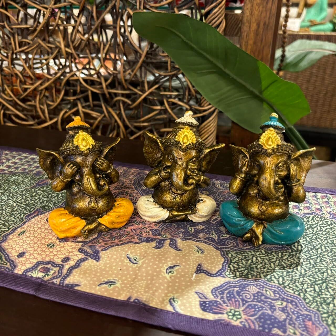 見ざる・言わざる・聞かざる」のガネーシャバージョン。見ないガネーシャ・聞かないガネーシャ・言わないガネーシャ カラフル 3体セットです。