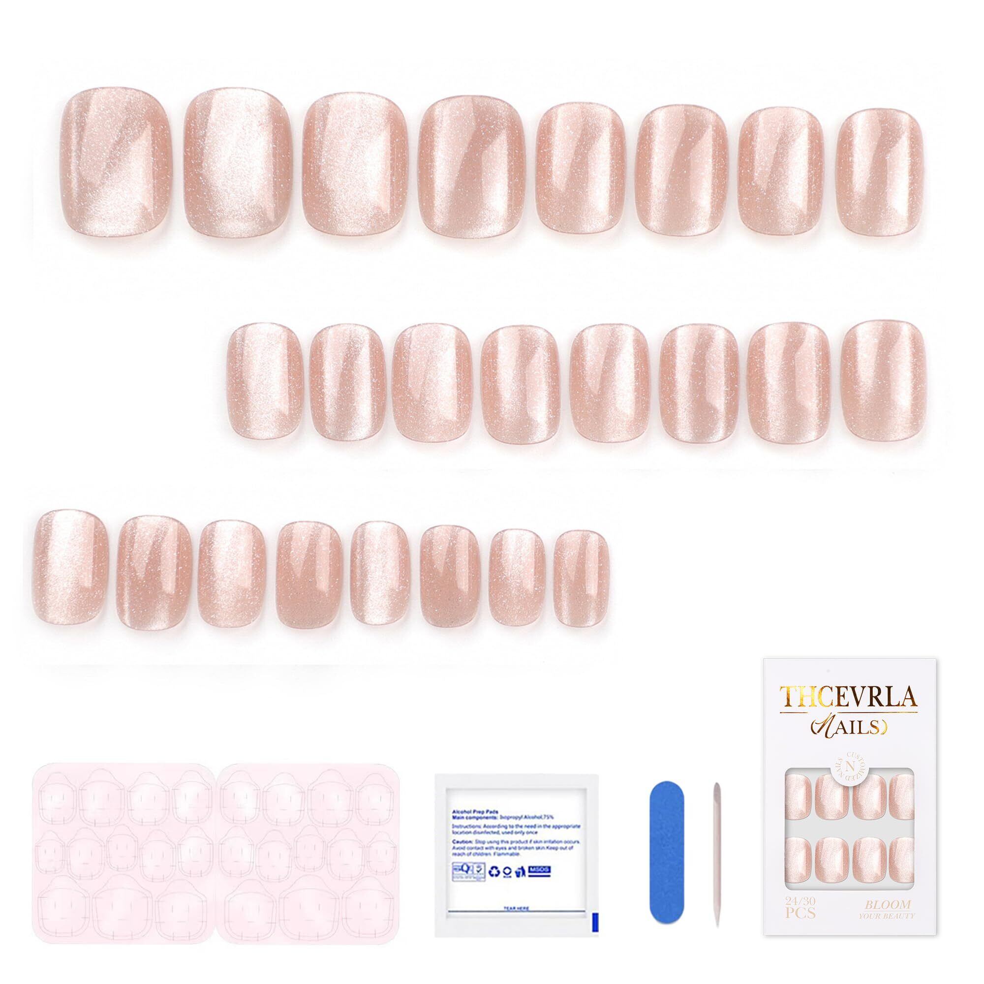 ネイルチップ - ヌードピンク 手作りネイルチップ ショートクMINI,キャッツアイ マグネット おしゃれ 付け爪ゲル化,ツールキットが付属しています,24枚入