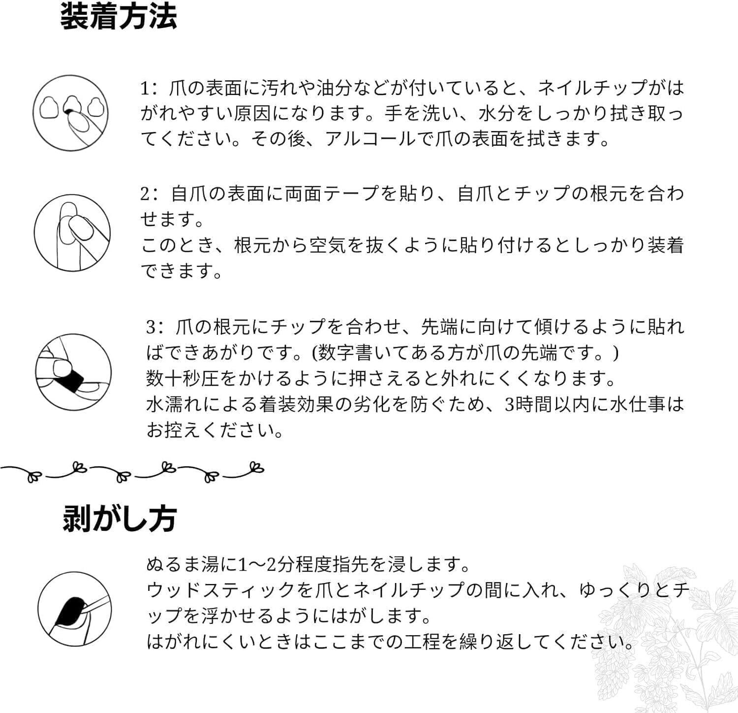 耐久性が高く、仕事や日常生活で繰り返し使用できます。 アジア人向けに開発されたネイルチップ。高度なネイル技術は不要で、初心者でも簡単に貼れます。わずか5分で仕上がり、自宅でネイルサロンと同じ効果を得られます。高価なネイルサロンはもう必要ありません。 日常生活からバル・ミツバ、卒業式、結婚式、パーティー、バーでの集まりまで、さまざまな場面で使用できます。友人への誕生日プレゼントにも最適です。