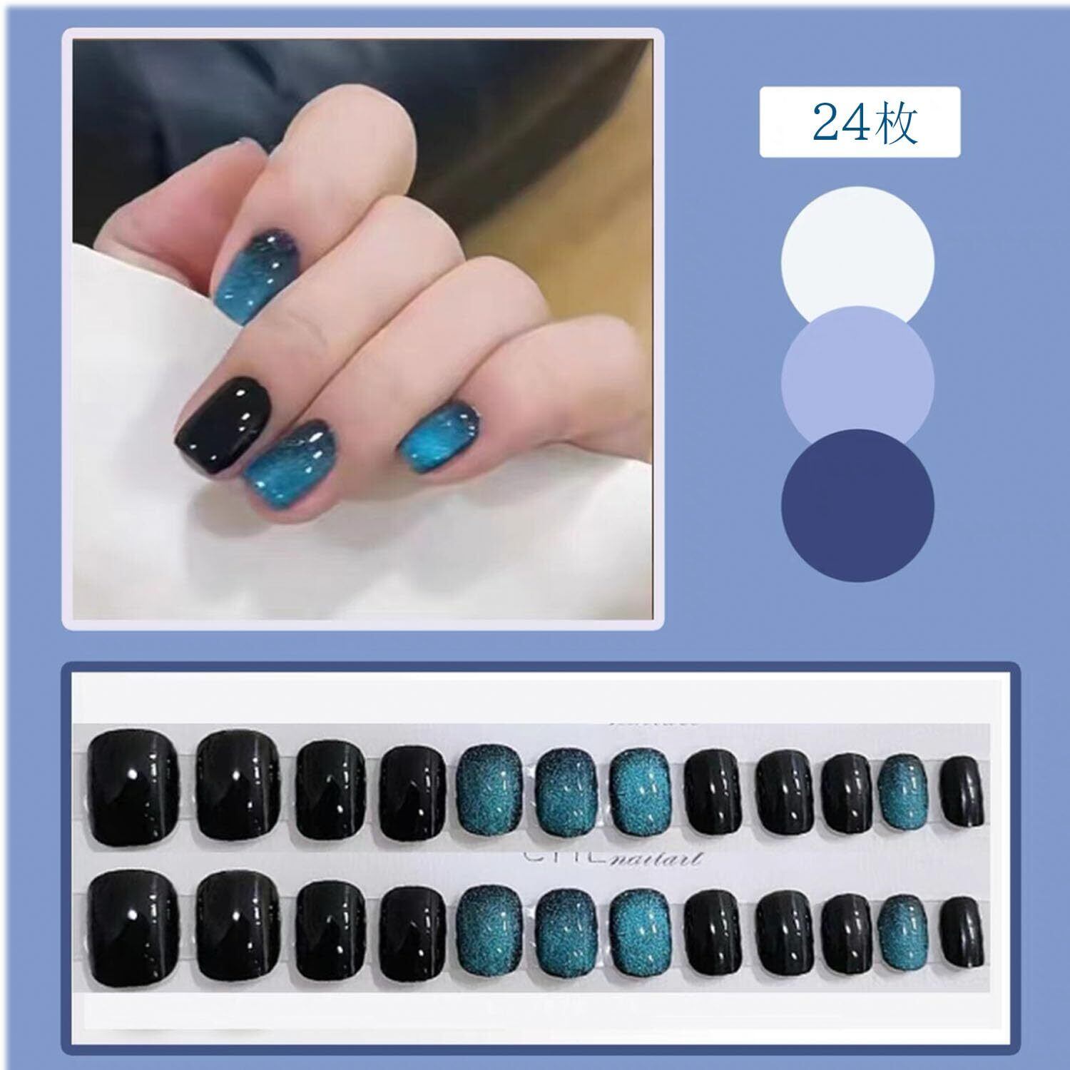 「ネイルチップ シンプル型」XUZOO 24枚 ネイルチップ 付け爪 短め 長め かわいい おしゃれ 人気 無地 シンプル ネイルシール つけ爪 ネイルツール 両面テープ付き (ブルー)