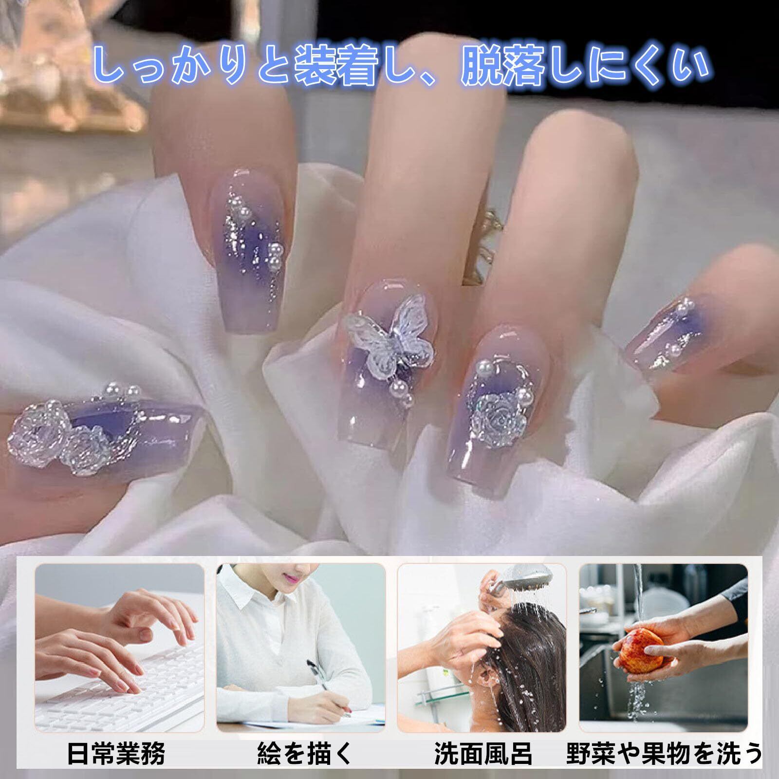 【繰り返し使用可能】つけ爪 ネイルチップは両面テープとネイルグルーで固定可。ゼリーゲル使用時は 3 日間維持,取り外しも簡単で本爪を傷めない。グルー使用で長期間保持可能,経済的に使用できる