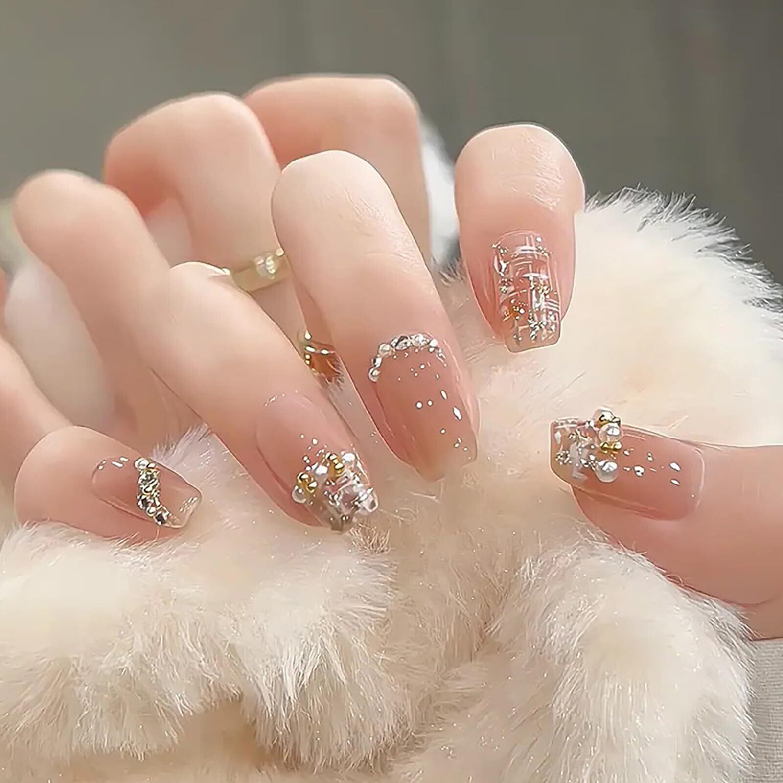 ネイルチップ ショート 24枚入 ネイルチップ 人気 和風 かわいい シンプル おしゃれ 成人式 結婚式 パーティー 日常生活に使用できます 花嫁ネイル (若々しさ-A05, M)