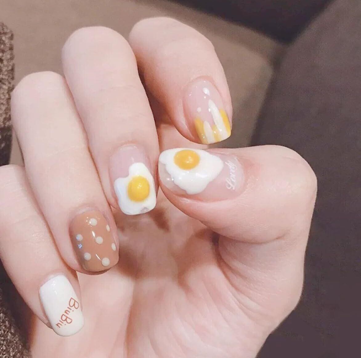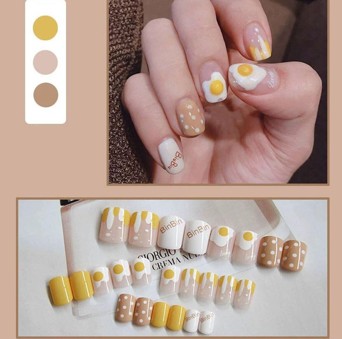 ネイルチップ ショート 24枚入 春夏秋冬 和風デザイン かわいい シンプル おしゃれ 成人式 結婚式 パーティー用 両面テープ&ウッドスティック&ネイルファイル付き (ZK069, フリーサイズ)