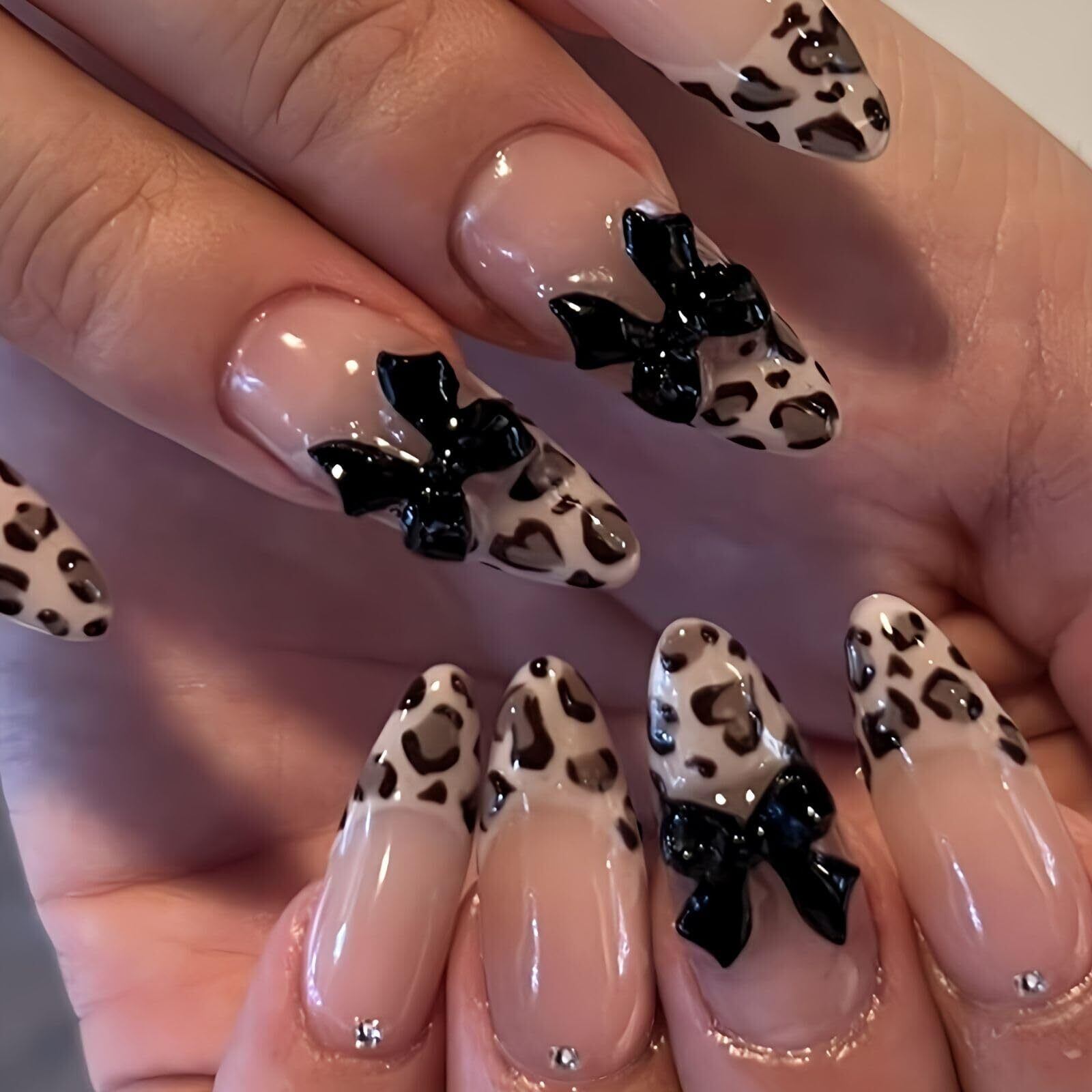 ネイルチップ ヒョウ柄 ギャル ロング 付け爪 可愛い キラキラ 3d 韓国 コギャル グッズ(マルチカラー8, ロング)