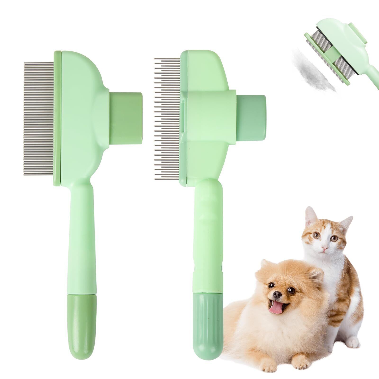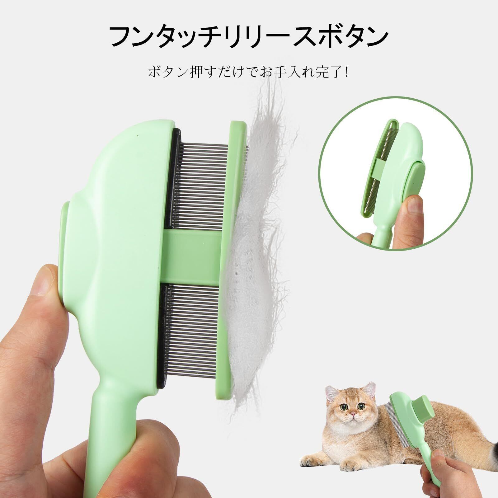 猫犬用コーム くし 櫛 ブラシ 毛のワンタッチ除去ボタン 密歯&長短歯2点セット 長毛・短毛対応 痛くないやさしい設計