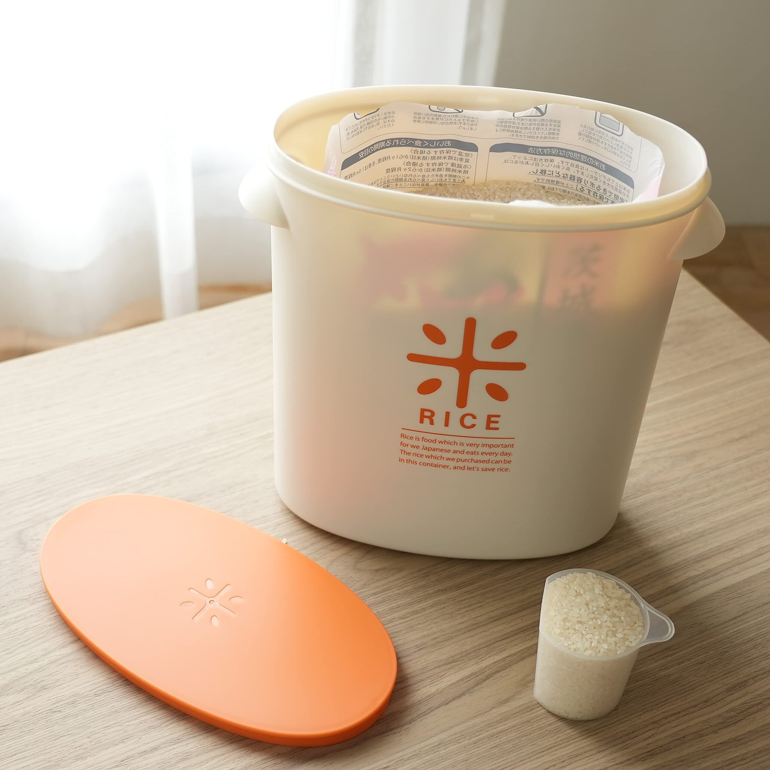 パール金属 日本製 米びつ 5kg オレンジ 計量カップ付 お米 袋のまま ストック RICE HB-3435