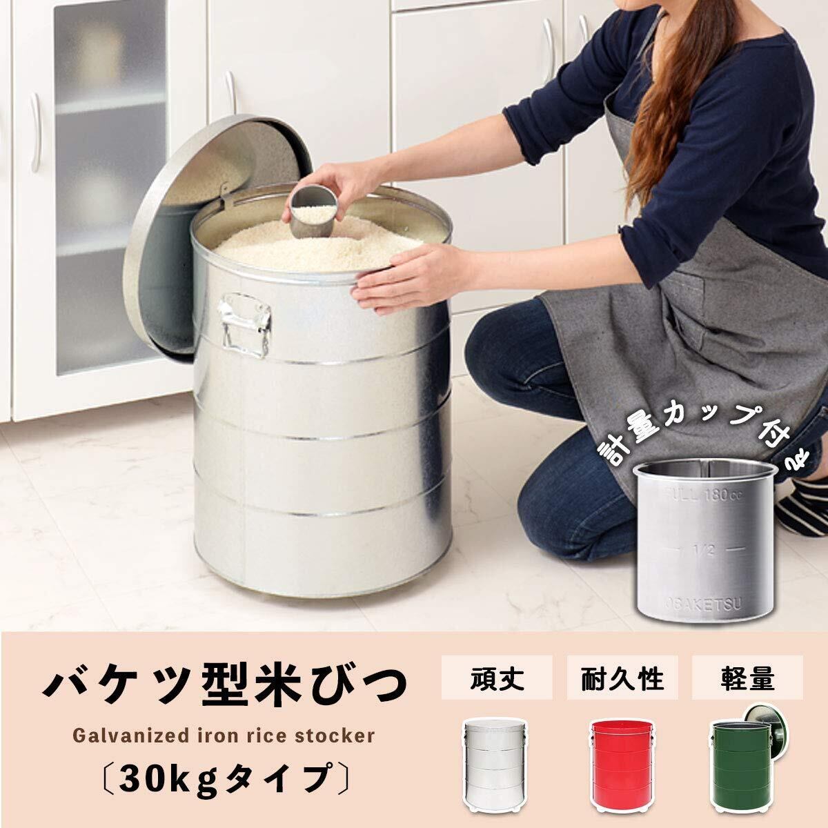 ぼん家具 テレビで紹介されました 米びつ 密閉 日本製 30kg ライスストッカ― お米収納 計量カップ付き 虫よけ 湿気 酸化防止 トタン製 米櫃 シルバー