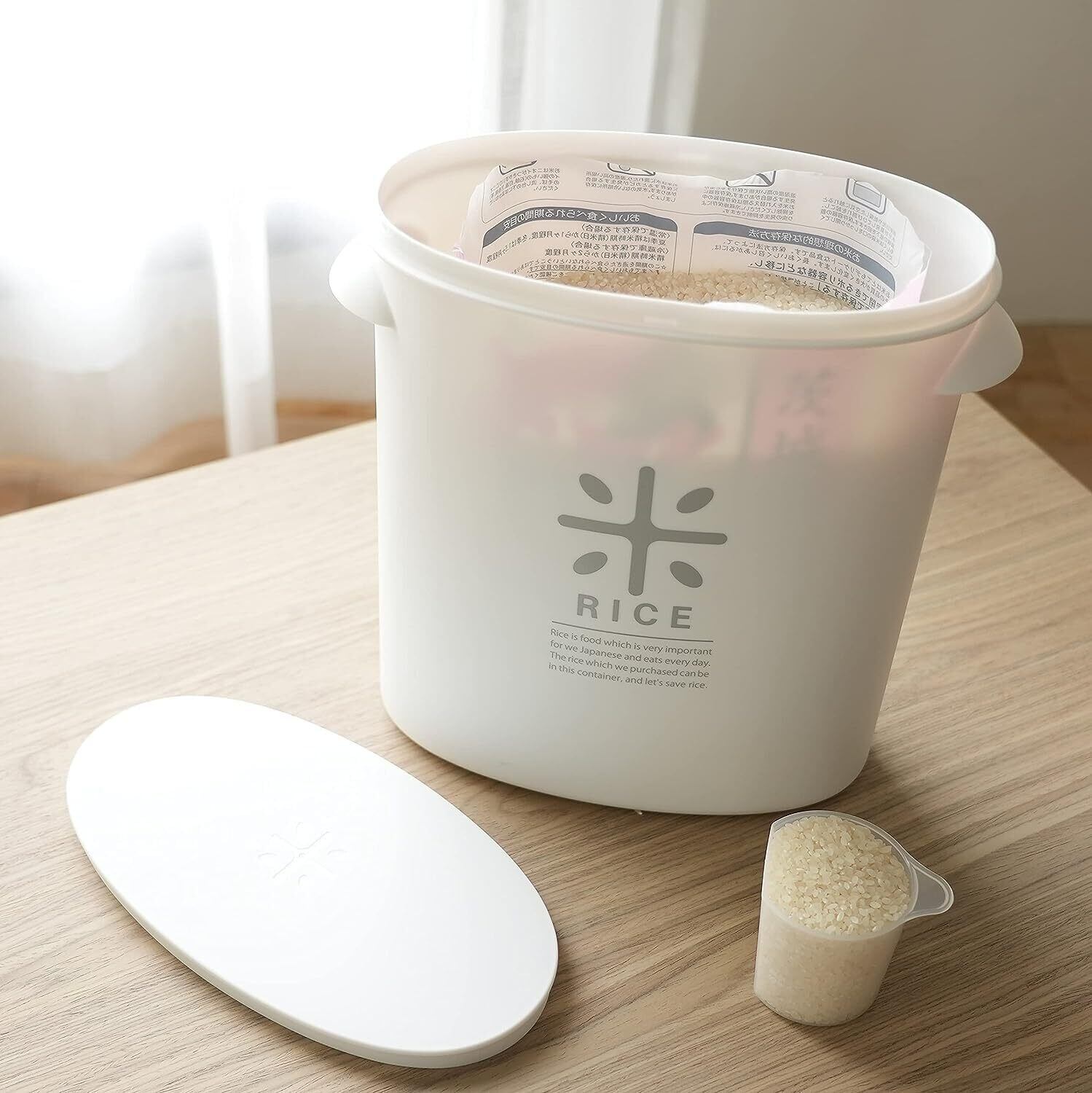 パール金属 日本製 米びつ 5kg ホワイト 計量カップ付 お米 袋のまま ストック RICE HB-3433