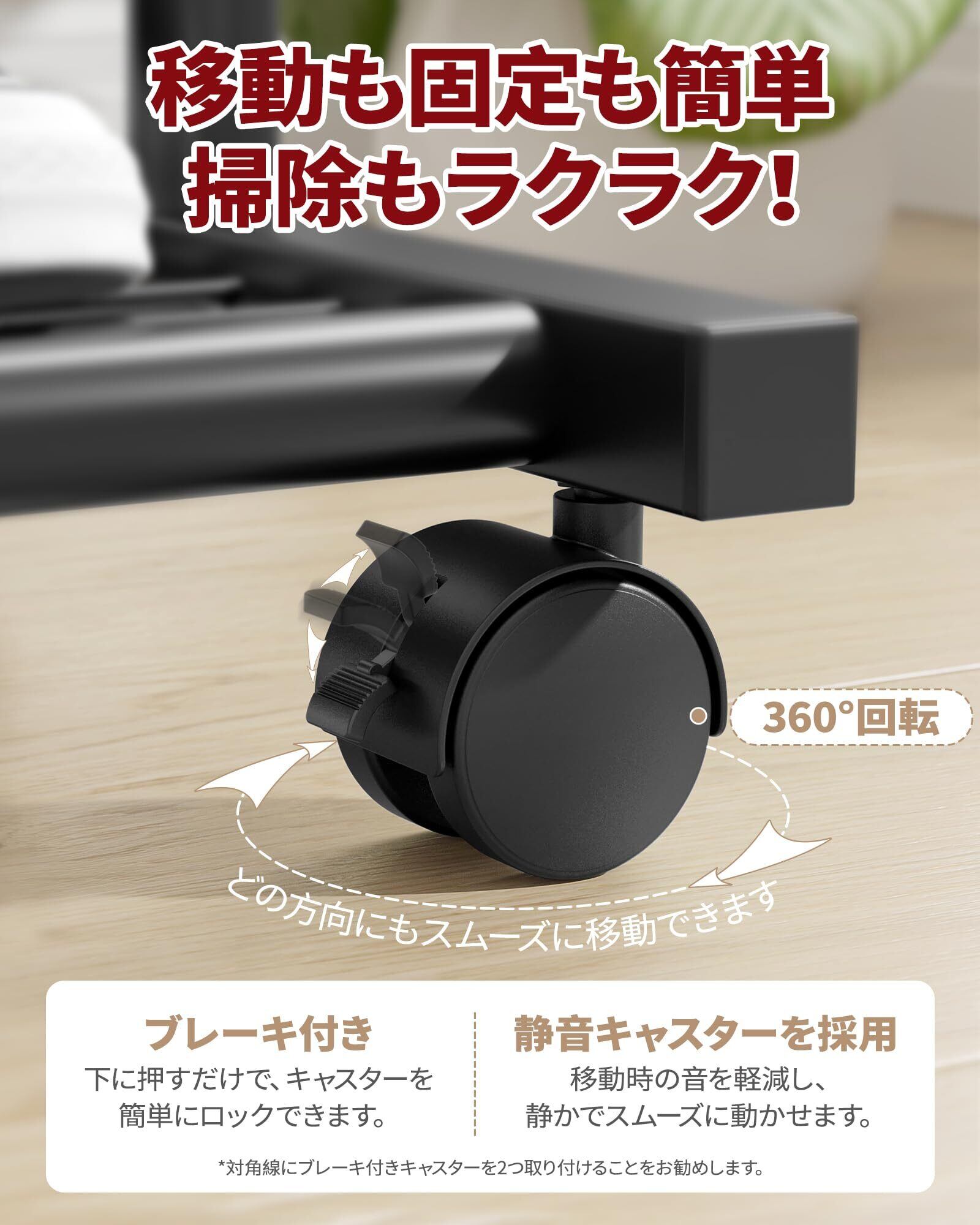便利な移動設計:Sakugi 洋服ラックは、360度回転する4つのキャスターを搭載しており、そのうち2つはロック機能付きで、移動と固定が簡単に行えます。このパイプハンガーは、家庭やオフィスでの使用に最適で、使いやすく柔軟な収納方法を提供します。