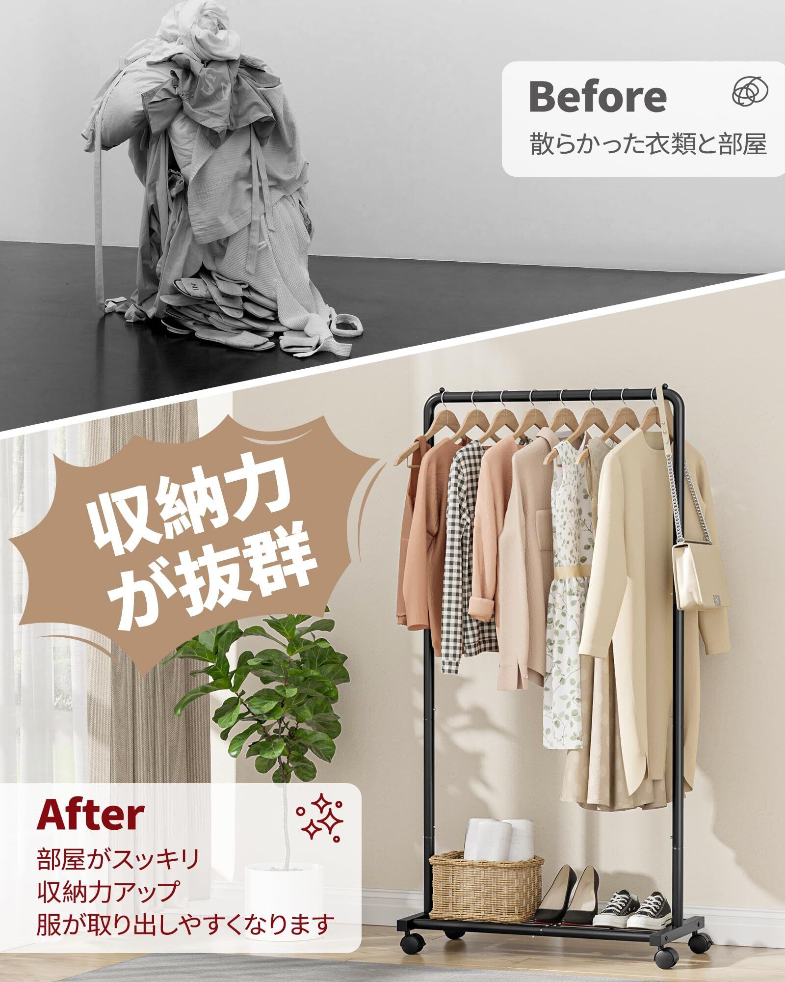 幅広い用途:Sakugiハンガーラックは、コンパクトなサイズ(幅73×奥行37×高さ150cm)で、寝室、クローゼット、ランドリールーム、オフィスなど、さまざまな場所に最適です。限られたスペースを有効に活用し、衣類の収納に実用的なスペースを提供します。