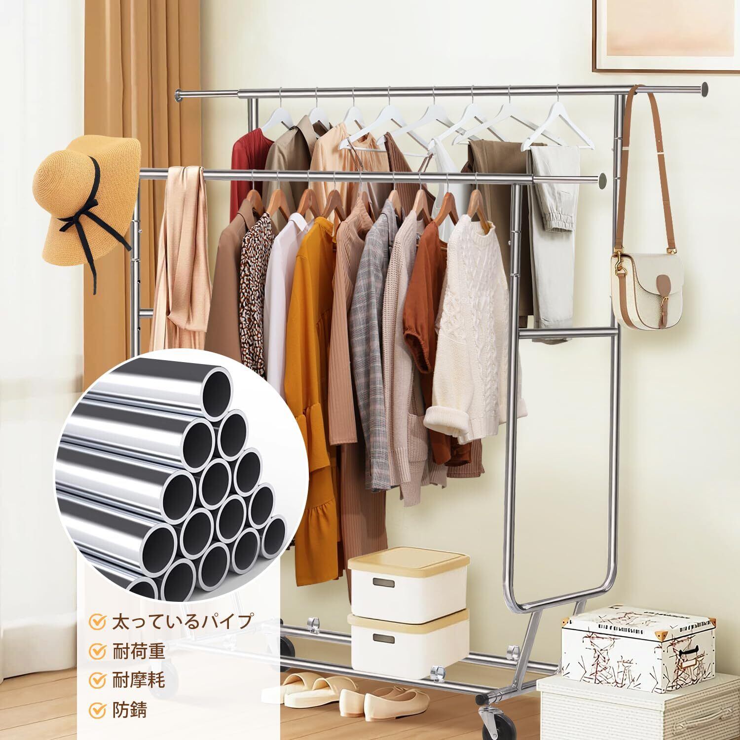 ハンガーラック 頑丈 2段 パイプハンガーラック 物干し スタンド 洋服ハンガー 大容量 洋服ラック たっぷり収納 耐荷重240KG 業務用 衣類ラック 高さ・縦横伸縮タイプ 幅130cm~190cm*高さ140cm~166cm*奥行55cm