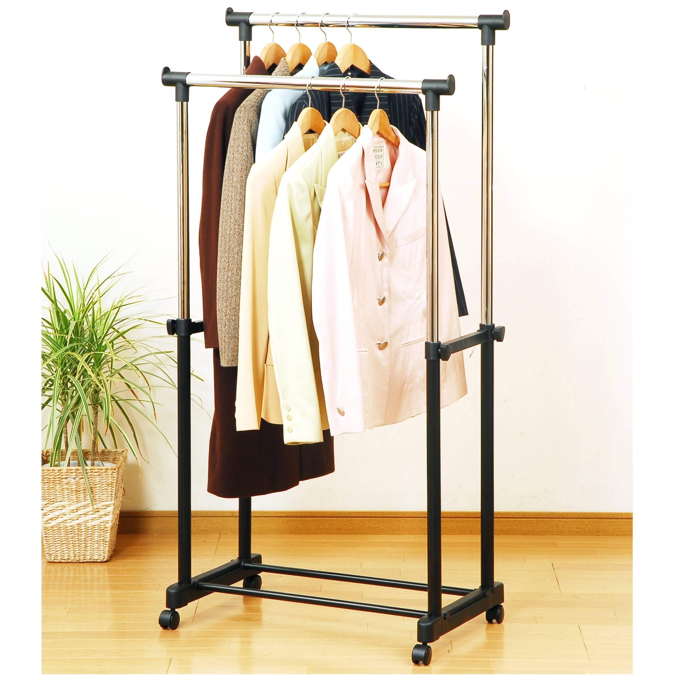 ●衣類が前後に掛けれるダブル仕様パイプハンガー●高さ伸縮するハンガーラック●キャスター付き(ストッパーなし)●組立品(組立時間:約10-20分)