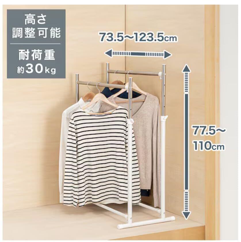 ニトリ 縦横 伸縮 ハンガーラック ヴェルサ2 ダブル NITORI 8440317, ホワイト