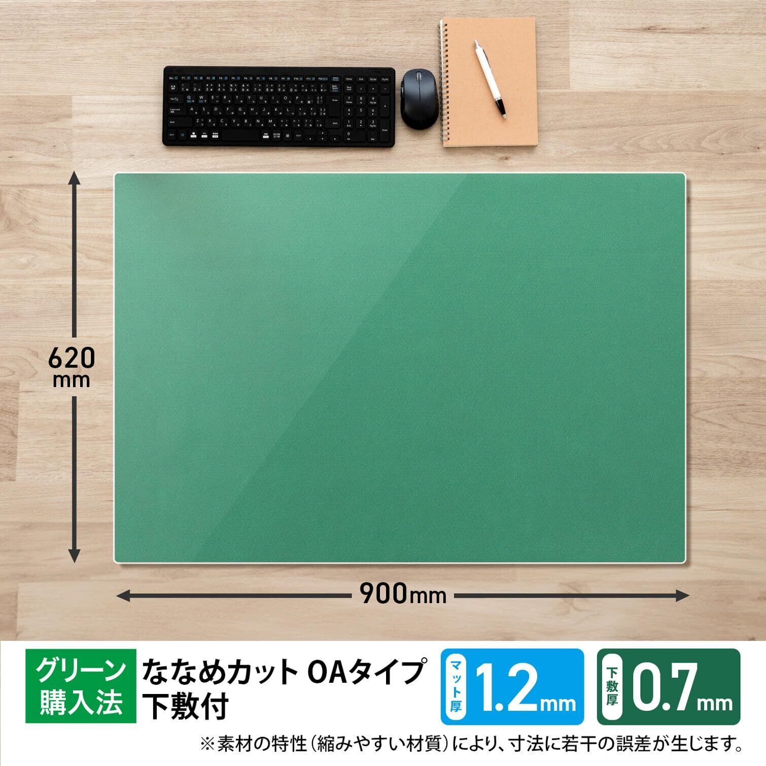 プラス デスクマット マウス対応 下敷付 エコノミータイプ サイズ 多数 マット めくれにくい インクが移りにくい 1.9㎜厚 薄手 900×620㎜ 透明+グリーン DM-007EW 41-055