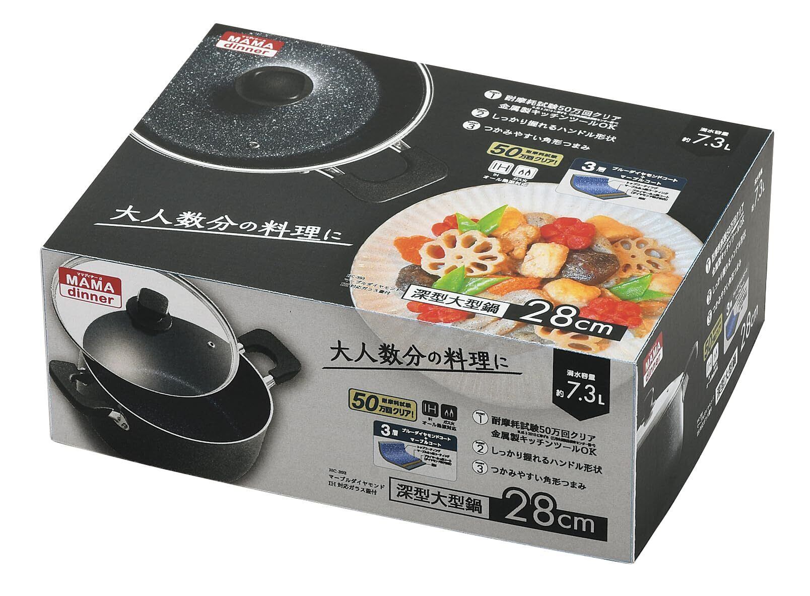 パール金属 深型大型鍋 ガラス蓋付 28cm IH対応 マーブルダイヤモンドコート ママディナーα HC-393