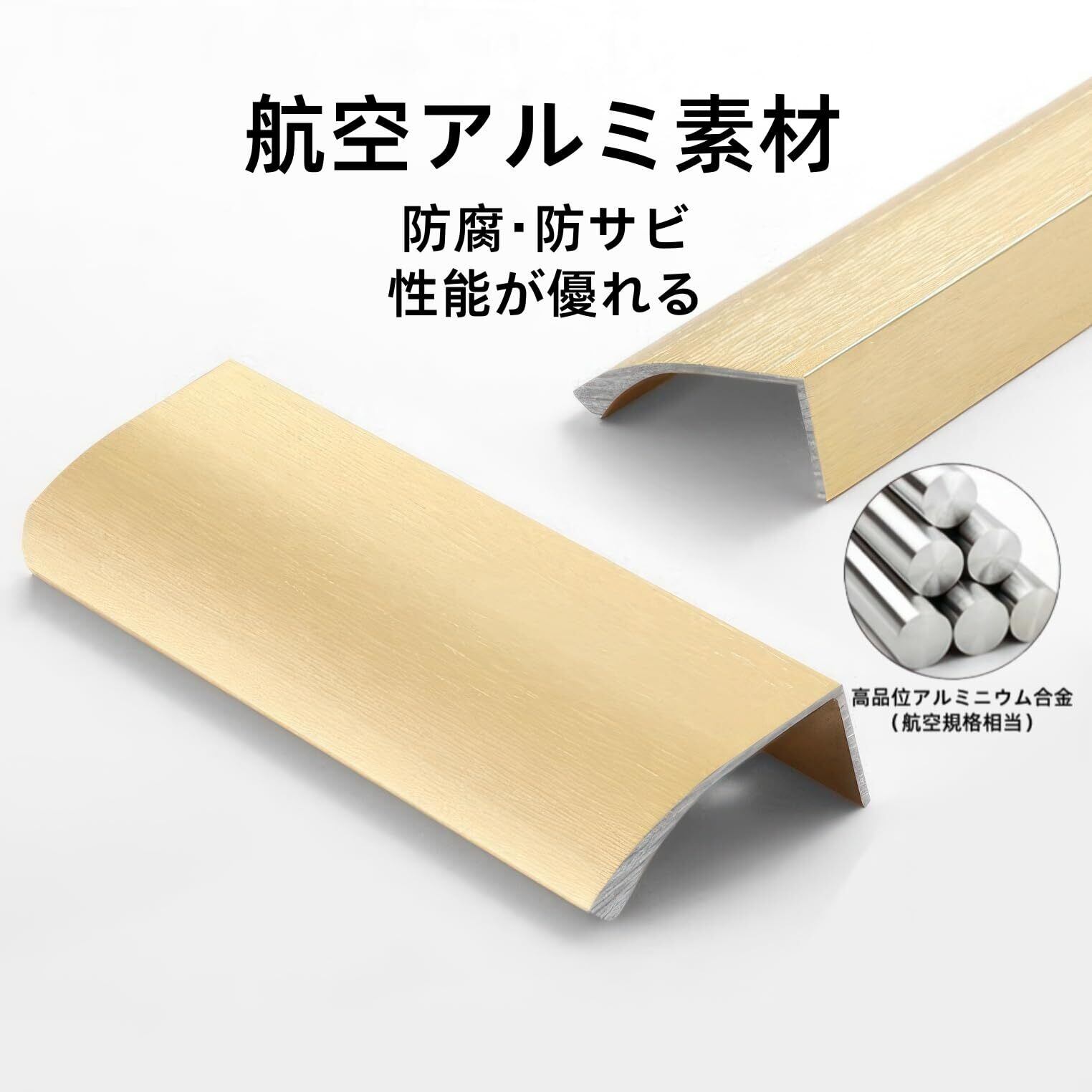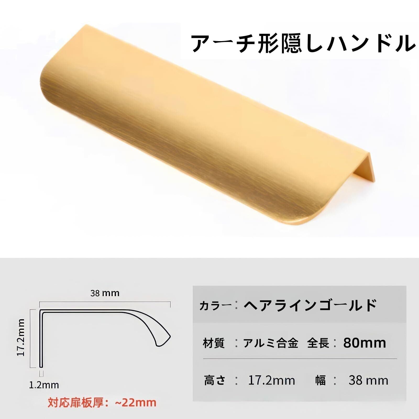引き出し 取っ手 ヘアラインゴールド アルミニウム合金 穴間距離64mm,隠しドアハンドル 4個セット シンプルスタイル,フィンガーエッジプル 食器棚・キャビネット・戸棚・収納棚・ワードローブ家具 取っ手 金具 ネジ付き (ヘアラインゴールド, 80mm)