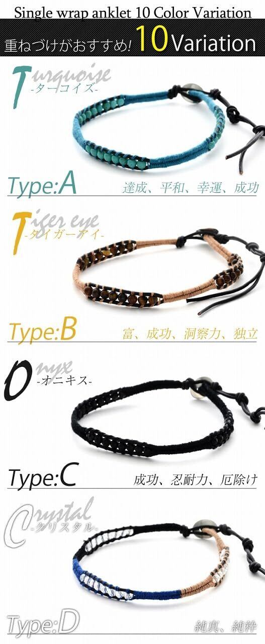 素材: アゲート/ターコイズ/水晶/タイガーアイ/オニキス/ハウライト/メタルパーツ/牛紐 足首長さ:最小23cm~(4段階アジャスタ)最長33cmほどの足首まで可能 手作りにより多少の長さが異なる場合が御座います。