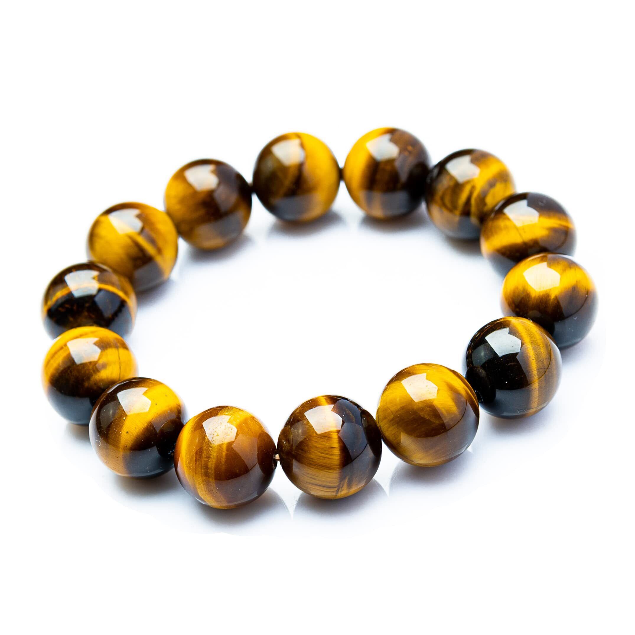 [京珠堂] 上質AAA 金運 勝負運 タイガーアイ 虎目石 ブレスレット パワーストーン (14mm, 17.5~18cm)
